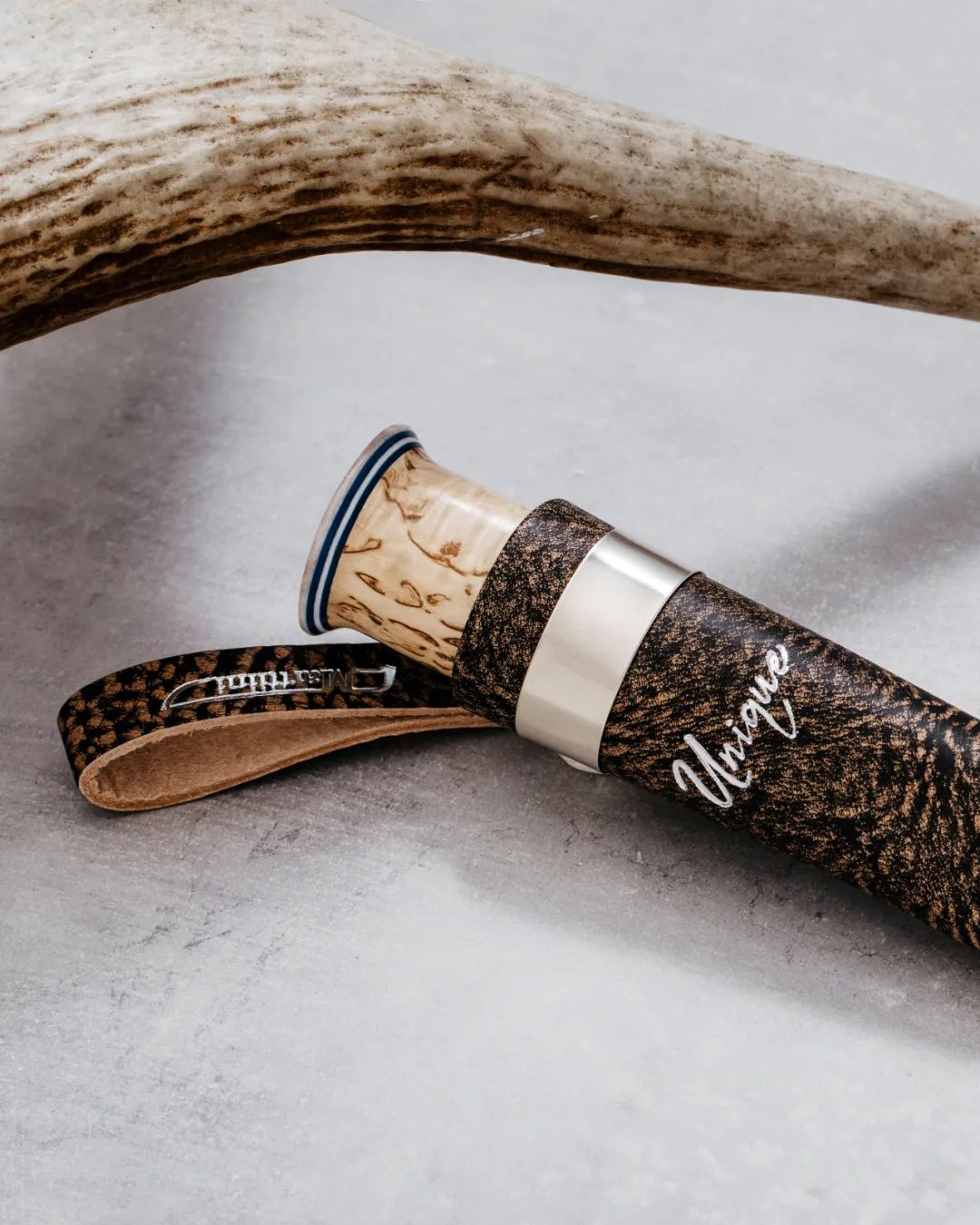 在常规的实用系列之外,收藏级别的Unique by Marttiini成为很多进阶玩家津津乐道的话题。手工锻打的刀刃以及手工雕刻的刀柄让每一把Unique by Marttiini都是独一无二的存在,部分型号甚至用120钢层的HRC 60刀片打造,当然定价也普遍在400欧元之上。除此之外,Marttiini在官网还开通了定制服务,大家可以根据自己想要的刀柄材质以及钢材来ID出属于自己的Marttiini。
