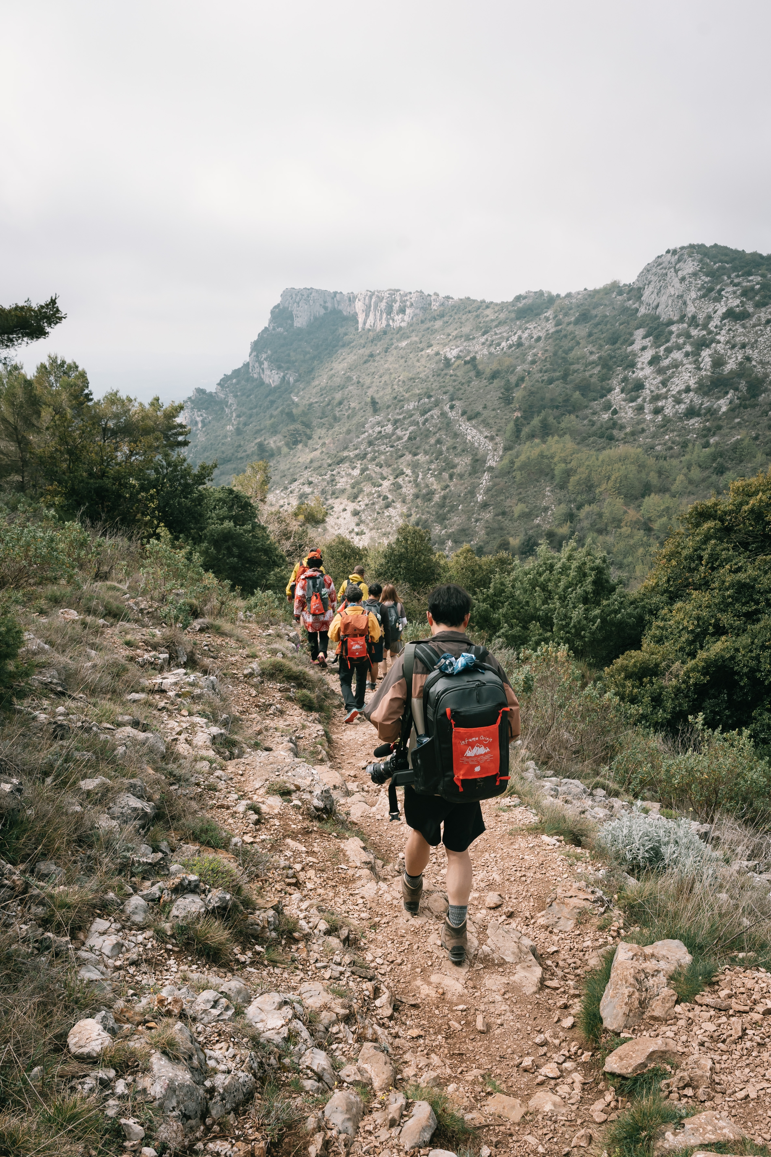 在极具视觉冲击力的石灰岩地貌中行进。陡峭岩壁、稀疏植被尽显南法干燥原始的山地风貌,三百余年的古橡树在粗粝山石间静静伫立,带来一抹温柔而厚重的生命力。