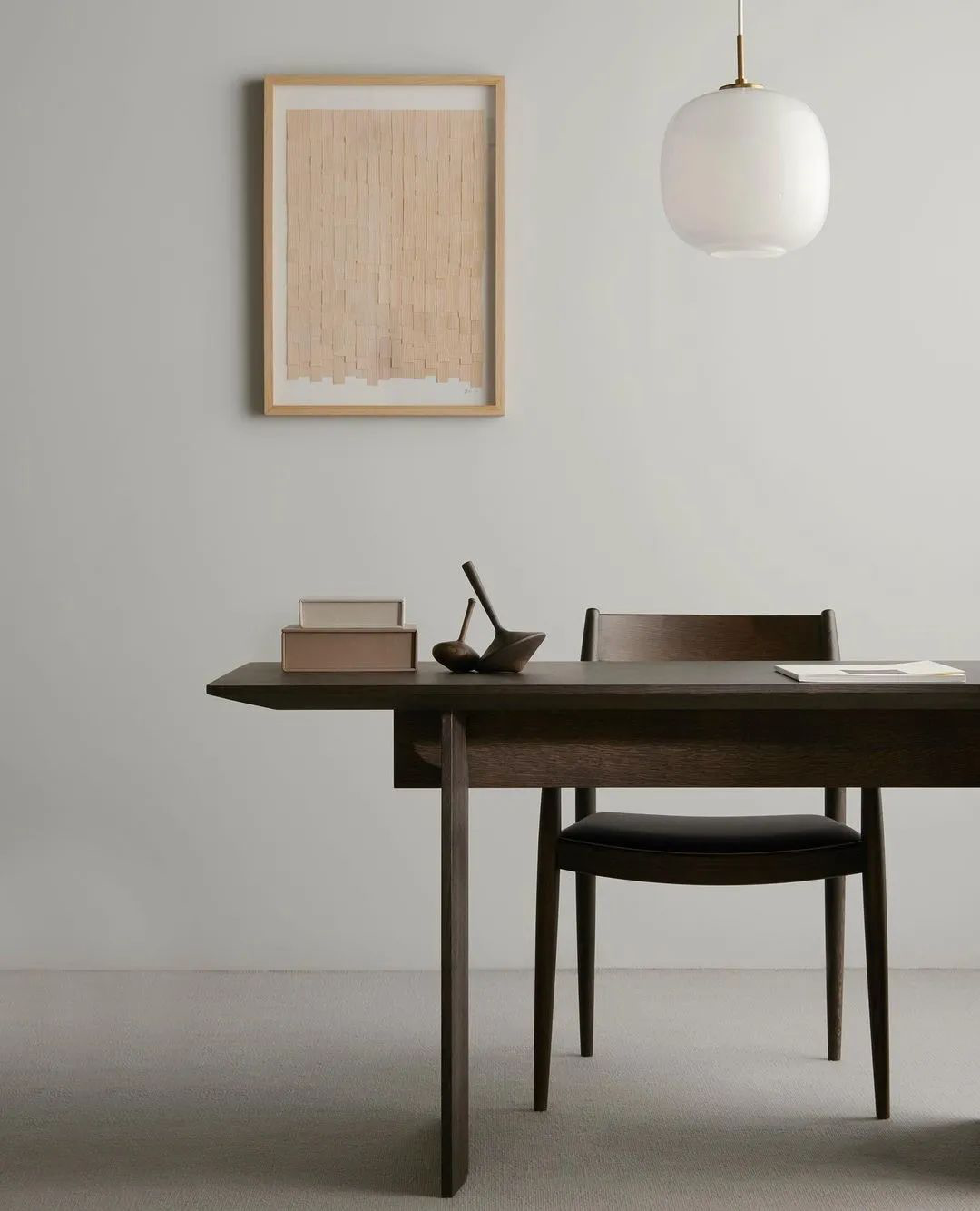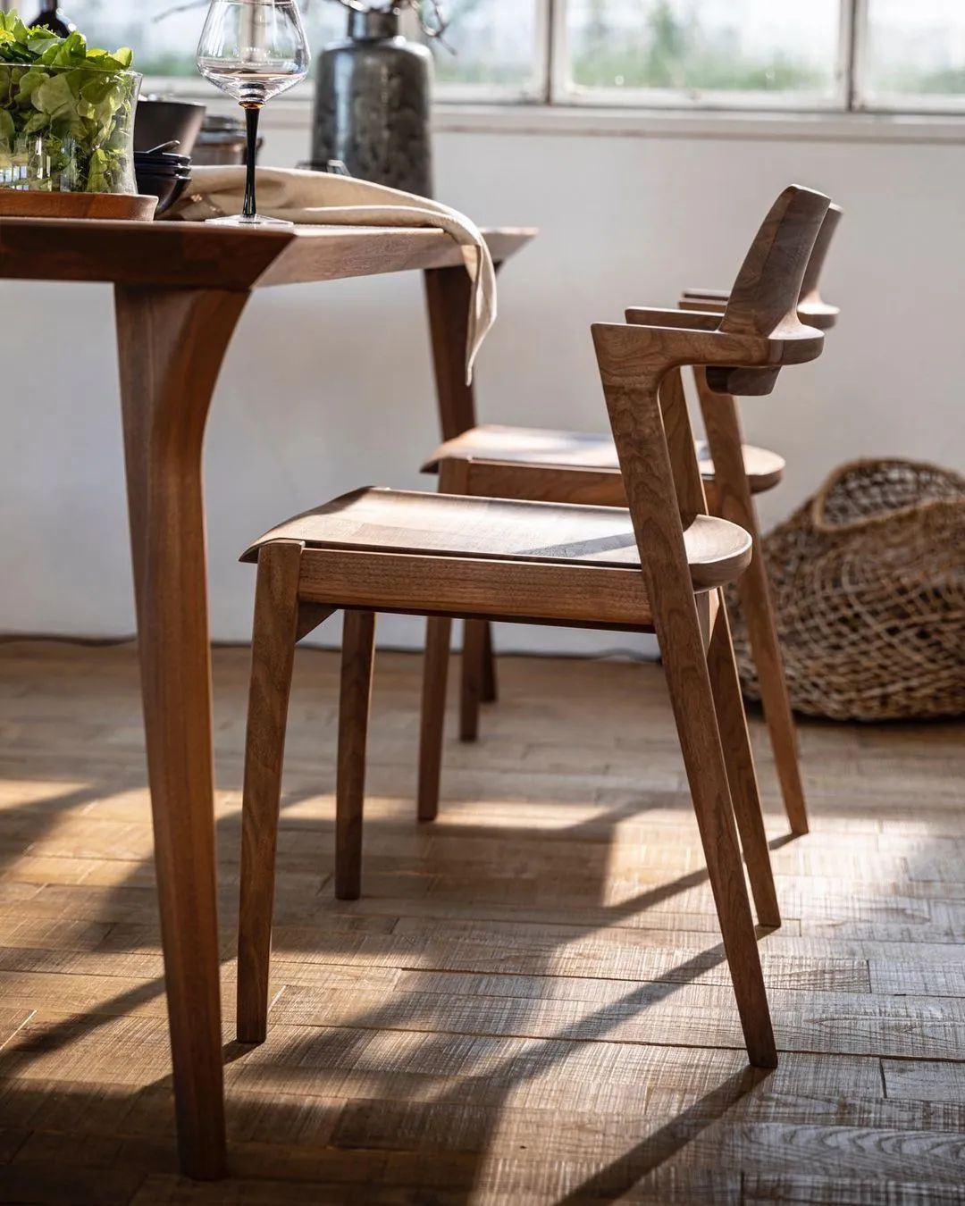 秋山木工桌椅组合的神奇之处是在一起有很强的日系体系感,作为家具单品亦能与周围环境融为一体,尽管恪守传统但并没有浓重的年代感与不伦不类的媚俗感,木质肌理结构中透着一股当代东方审美之下的禅意。