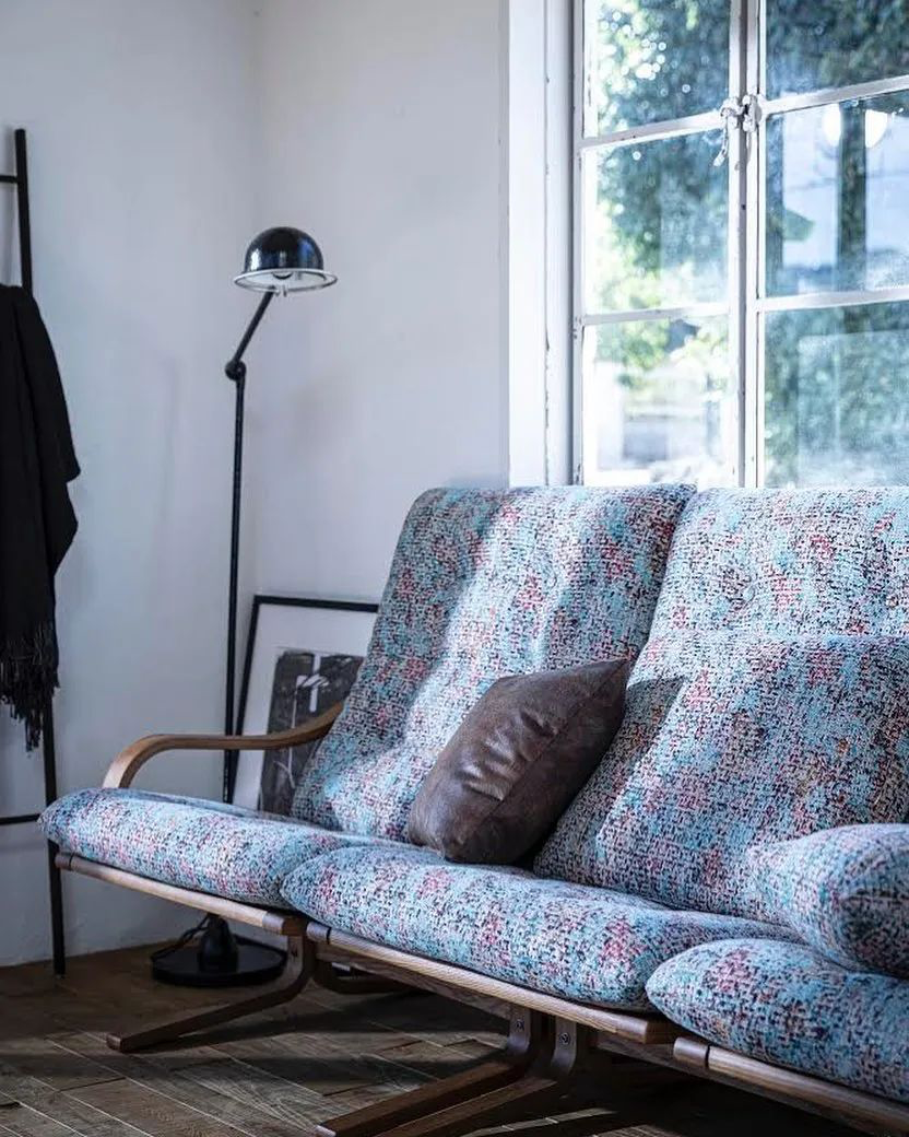 脱离了原厂厚重坐垫靠枕的木质基底沙发直接换做榻榻米也有另一番风韵: