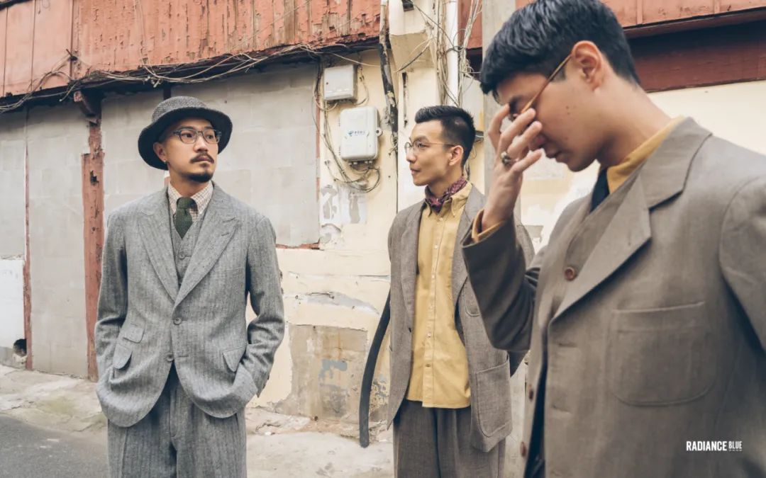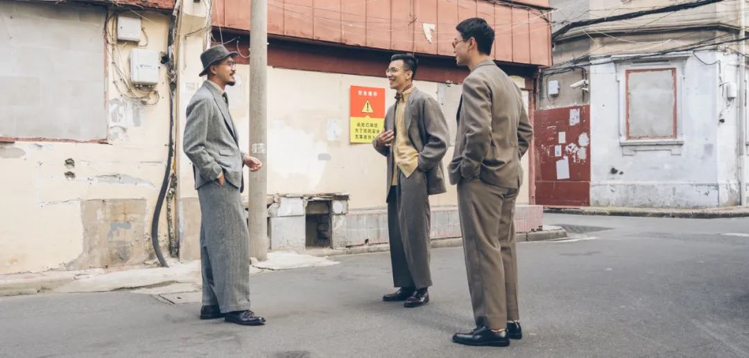 仔细一看,原来是上海BFC三巨头修雨、小吉、天成,而且身上都分别穿着MotivMfg在AW21用三家知名面料制造商的面料来设计的西装套装,不同气质的三人用不同的方式演绎着与别不同的风格。
