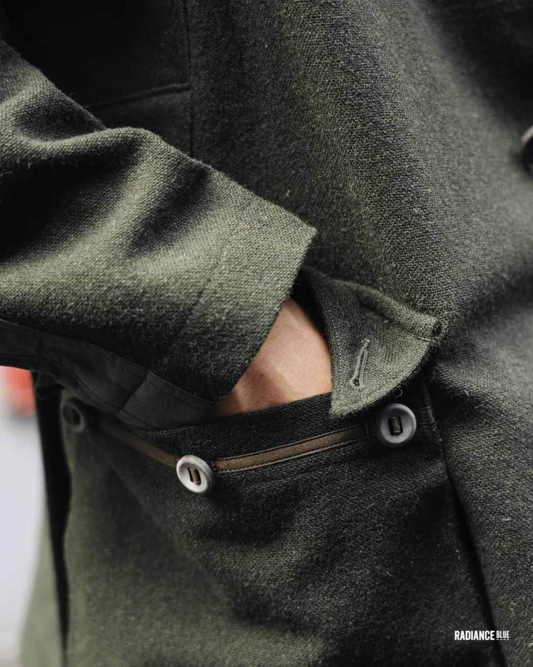其实面料本身的调性就会带出另一种味觉,更不用说这面料的原型是来自一块1910年代的军用斜纹呢面料,后来由苏格兰面料制造商Lovat经过改良后生产,最后被用到MotivMfg的这三款产品中。
