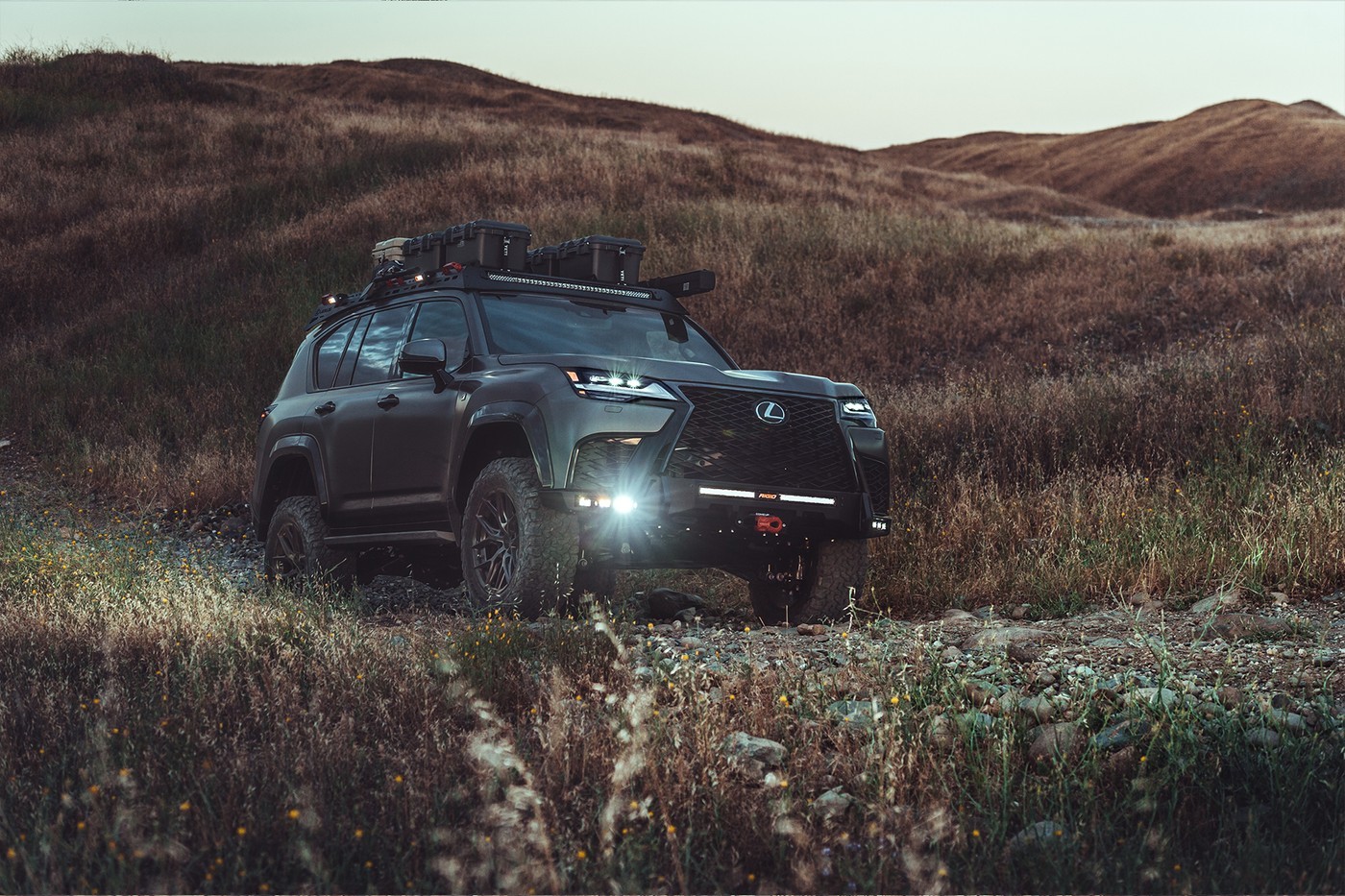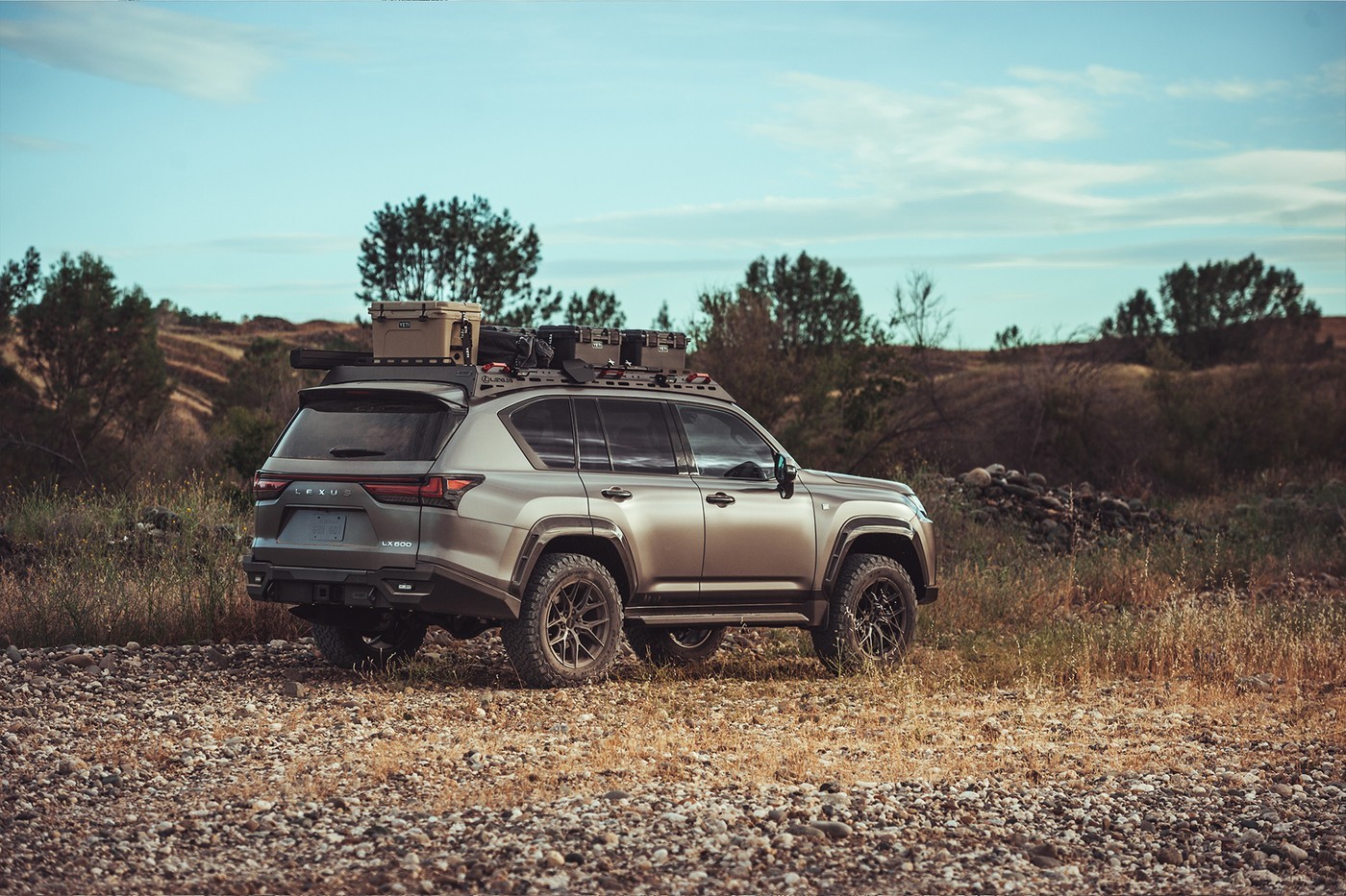 这款三方合作豪华运动越野 SUV 将会是户外和露营爱好者的好帮手,全称 “LX 600 Alpine Lifestyle Concept” ,旨在为高端家庭用车提供更多越野能力。这款 SUV 有许多增强功能,例如 Dissent 越野 5052 铝制机架系统、10 号钢模块化前后保险杠、带 Agency 6 卸扣的 Comeup Seal gen2 12.5rs 绞盘、JAOS 碳纤维挡泥板,以及 Rigid Industries 照明系统,至于 SUV 的车轮和胎面采用 Vossen HF6-4 Hybrid Forged 20×9.5 车轮搭配普利司通全地形 T/A KO2 轮胎。此外,为了配合生活方式风格,概念车型的大量额外存储装载空间由 YETI 提供,与 TrekBoxx Expedition System 相结合。