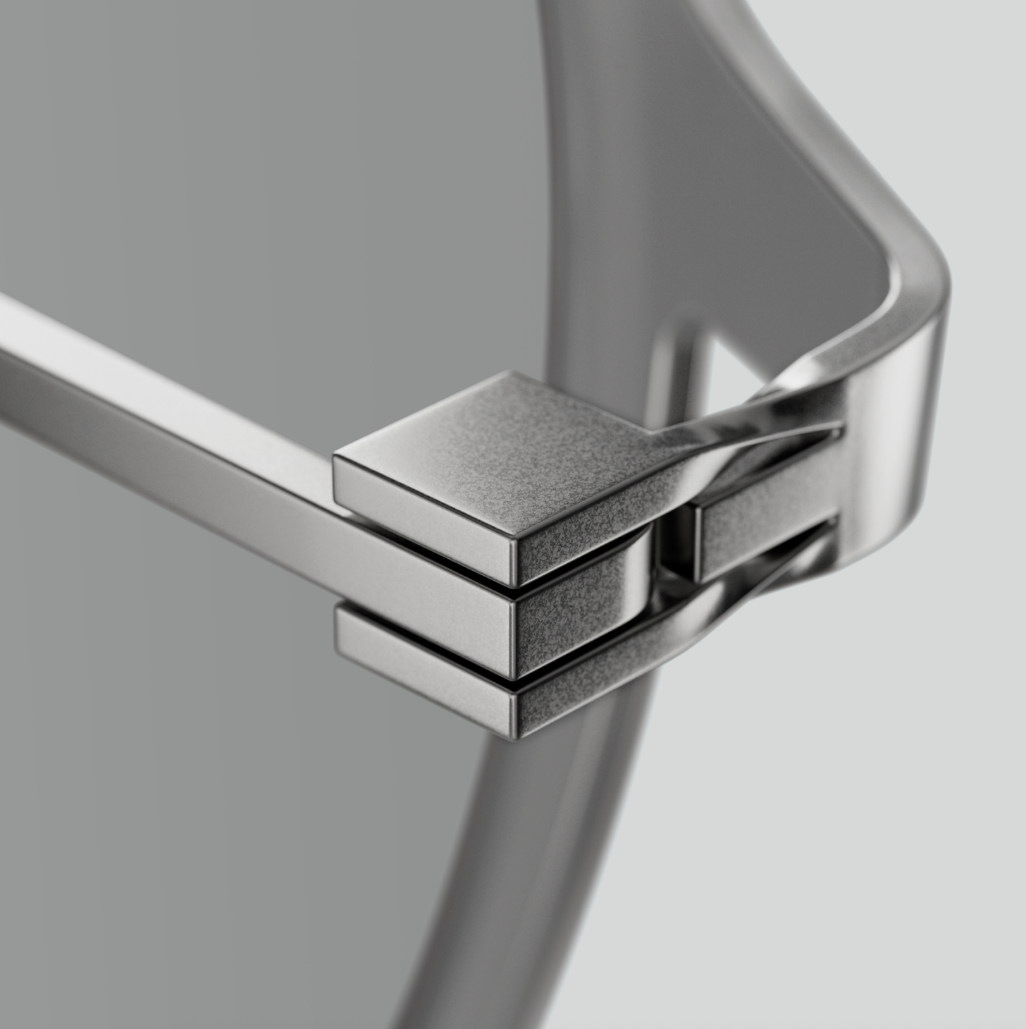 LINDBERG全新blok titanium系列的前框与铰链由单片钛金属激光切割一体成型,颠覆传统制作范式。该系列将品牌标志性的圆柱体铰链革新重塑,以大胆的立方体结构呈现——无需一颗螺丝,仅通过精准扭转旋合而成,为LINDBERG卓越工程技术史册续写崭新篇章。贯穿全钛框架的棱角分明设计,为更广泛的受众塑造出雕塑感造型。丰富的钛金属与凹槽填色组合,使该系列实现了工业美学与个性表达的完美平衡。