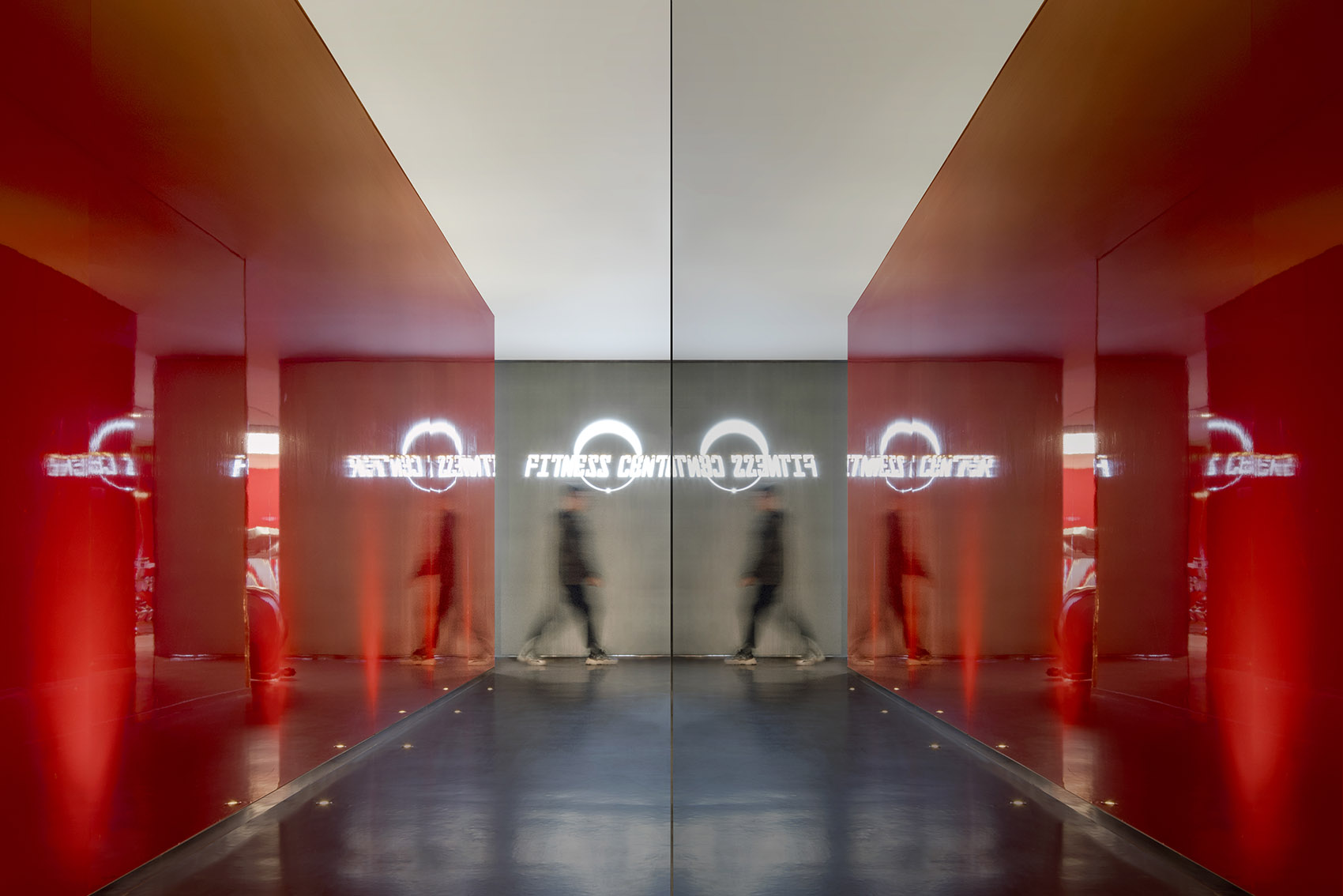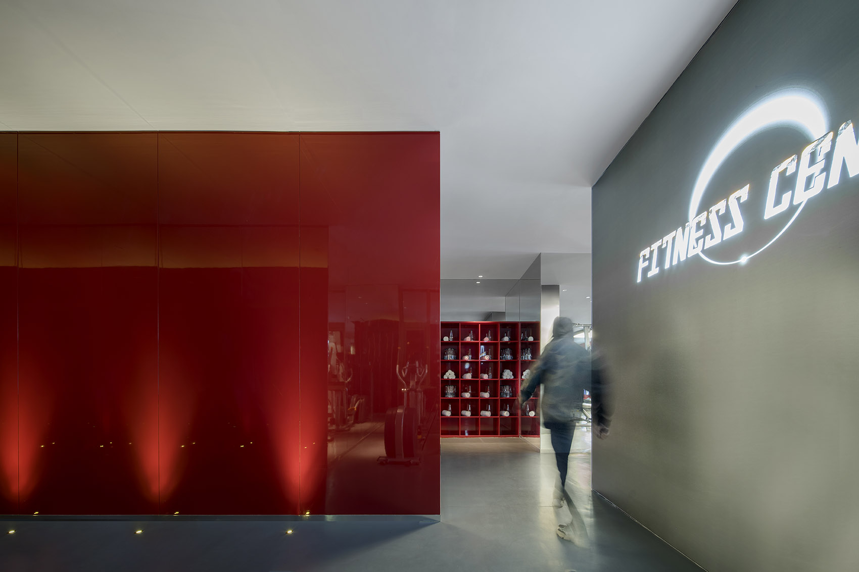 夺目的色彩使得健身房格外引起人的关注、材质对光有着非常好的扭曲映射效果,强烈的视觉感官下,潜在意识中冲击着身体的每个细胞,以更好的空间氛围,刺激着体验者的运动细胞 。
