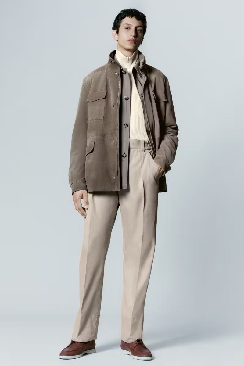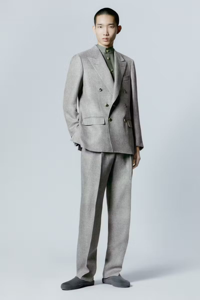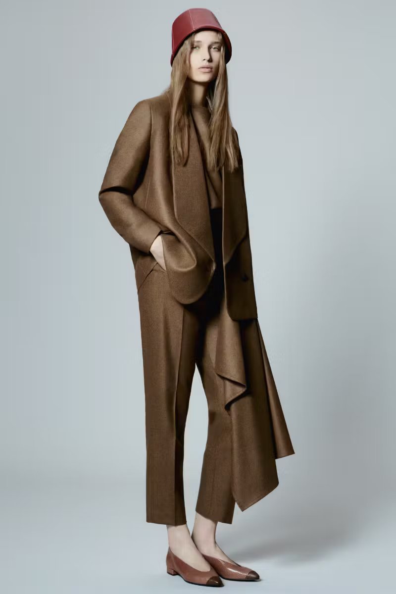 本季 Loro Piana 来到日本寻求灵感,而品牌本身也与日本有着天然渊源,例如该国丰富的手工艺文化,以及对可终生或长久使用的优质设计的崇尚,都是 Loro Piana 全然认可的部分—— 2024 春夏系列从时装屋内核与匠人精神出发,体现了上述这些共同的价值观。于设计层面看,该季既遵循日式传统,又忠于 Loro Piana 惯常的品牌形象,例如对 “ma” 展开的探索,“ma” 在日语里被用来描述身体和服装之间的空间。因而本季廓形柔和优雅,剪裁强调长线条风格,而且整个系列都在向日本和服致敬,借鉴元素包括深 V 领、采用宽幅面料收紧的腰部、宽大的衣袖以及衬衫的无领口设定等。重心依旧围绕廓形和面料,在秉承真正 Loro Piana 风格同时,这一季作品的材质也可圈可点,包括羊绒、亚麻、提花丝绸以及一种全新面料 Denim Silk ,这种面料由 60% 牛仔布和 40% 丝绸组成。