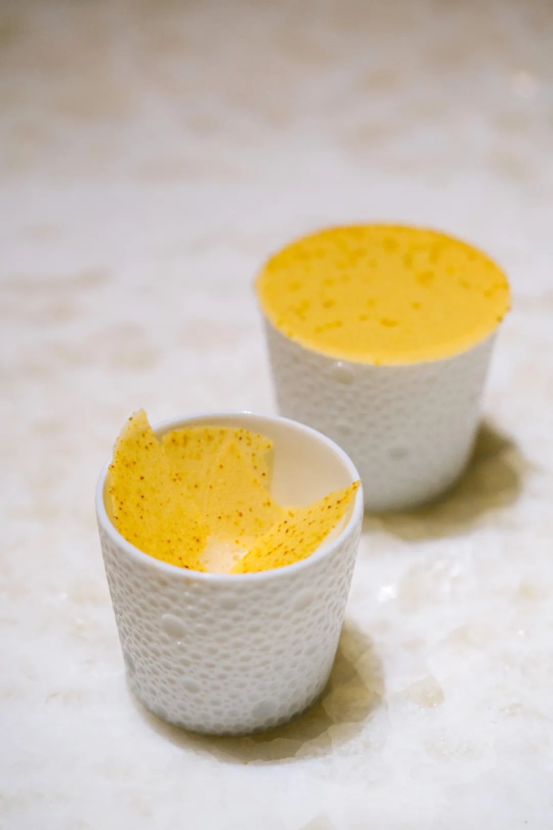 敲碎糖片,下面是秋月梨和柚子泡沫。