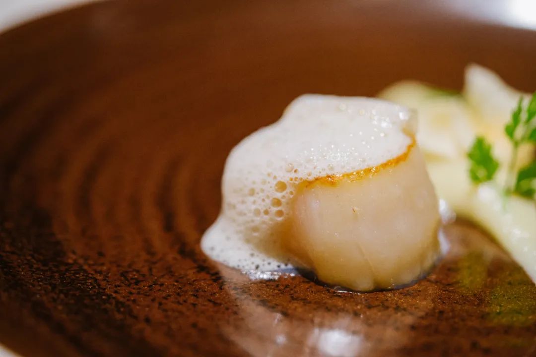 两粒北海道扇贝,轻煎到半熟,切开还有生嫩溏心。