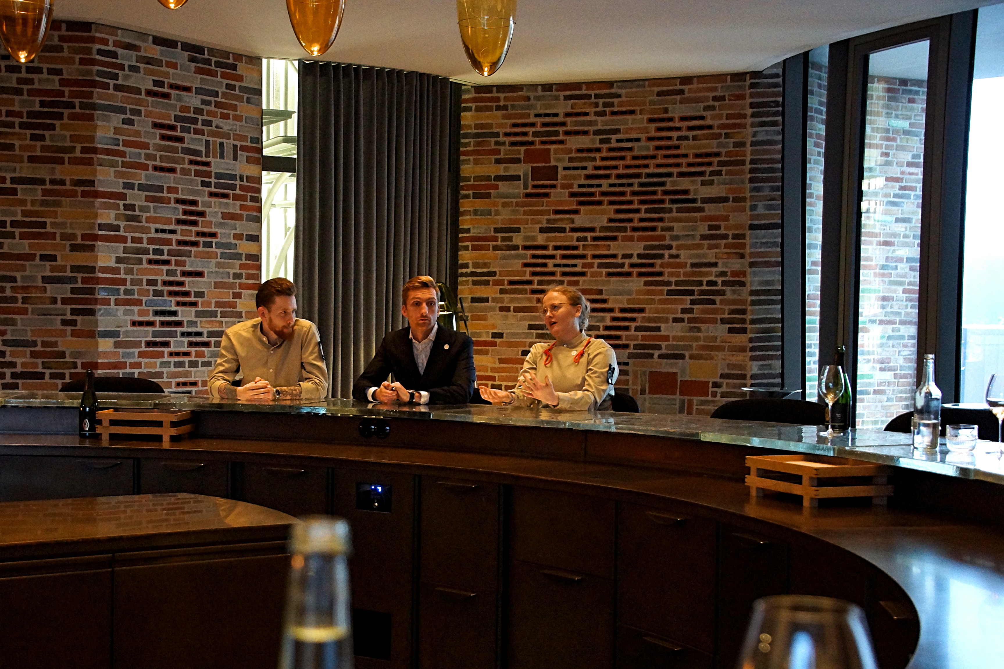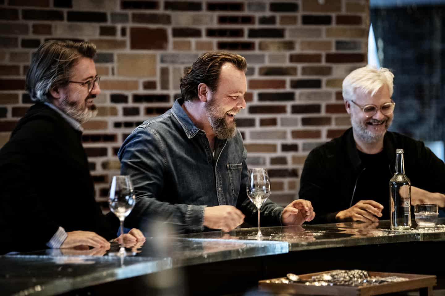 该餐厅的老板Morten Kirk Johansen(中)旁边是Studio Other Spaces的Olafur Eliasson(左)和Sebastian Behmann(右)
