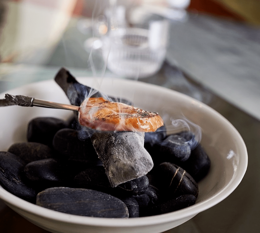 餐厅内部有一个晴雨表,显示着土、火、空气和水元素。如果火成为主要因素,那么便会在露台上进行烧烤;如果水占据主导地位,那么鱼就将成为菜单上的主角。