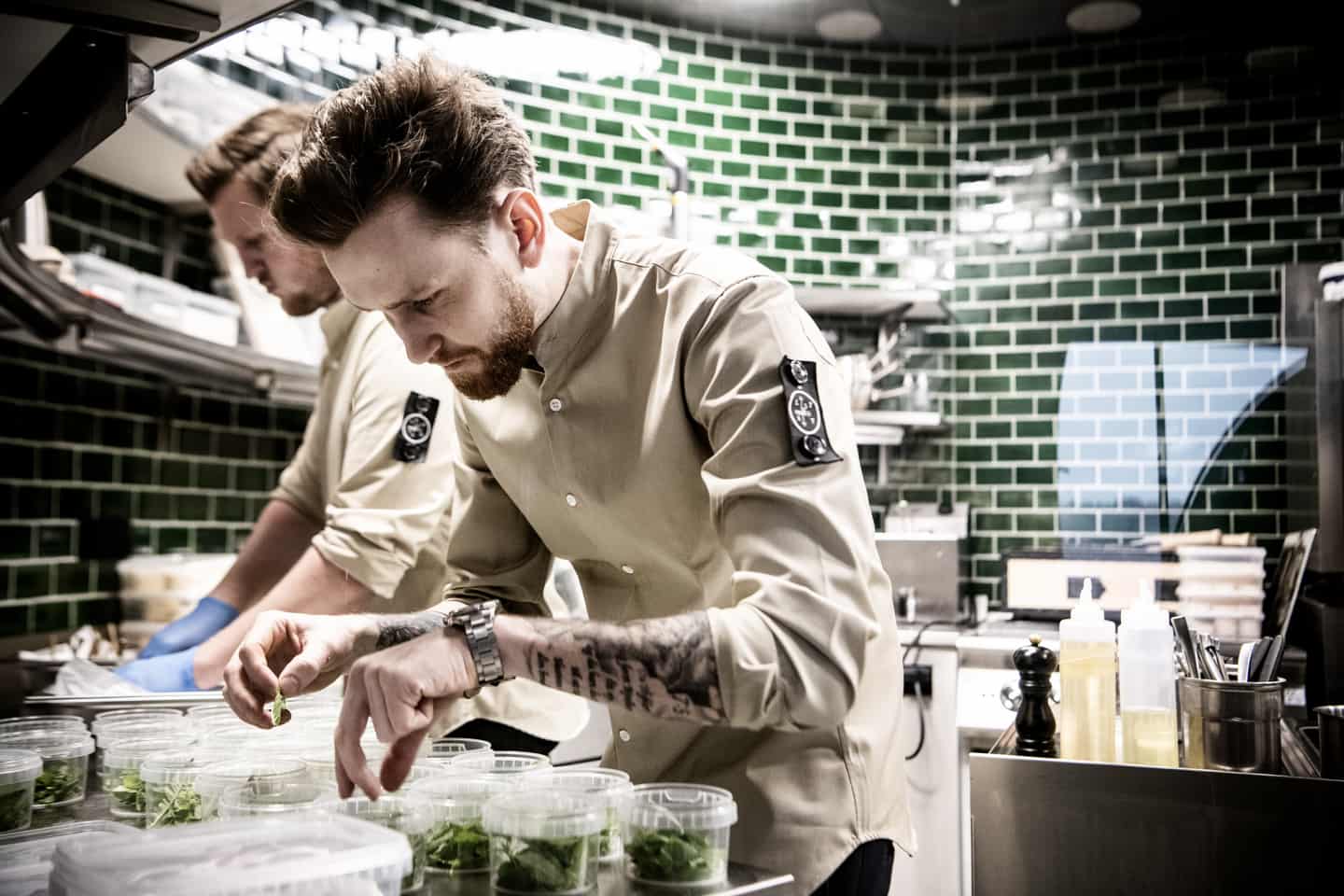 厨师的服装呈现出淡雅的米色,衣袖上还附有餐厅的logo。每道菜都精心设计,将食物本身变成了一种艺术。