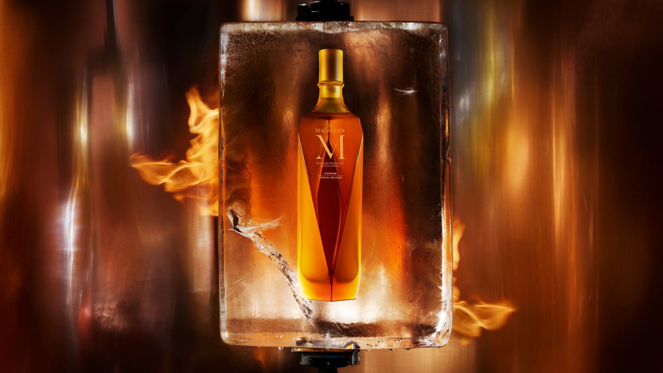 在这些作品中,他将璀璨系列置于冰块之中进行拍摄,冷冻在“水”这种介质中的威士忌酒瓶,是对麦卡伦与自然之间紧密联系的隐喻,让人想起静静流淌过麦卡伦庄园的斯佩河。