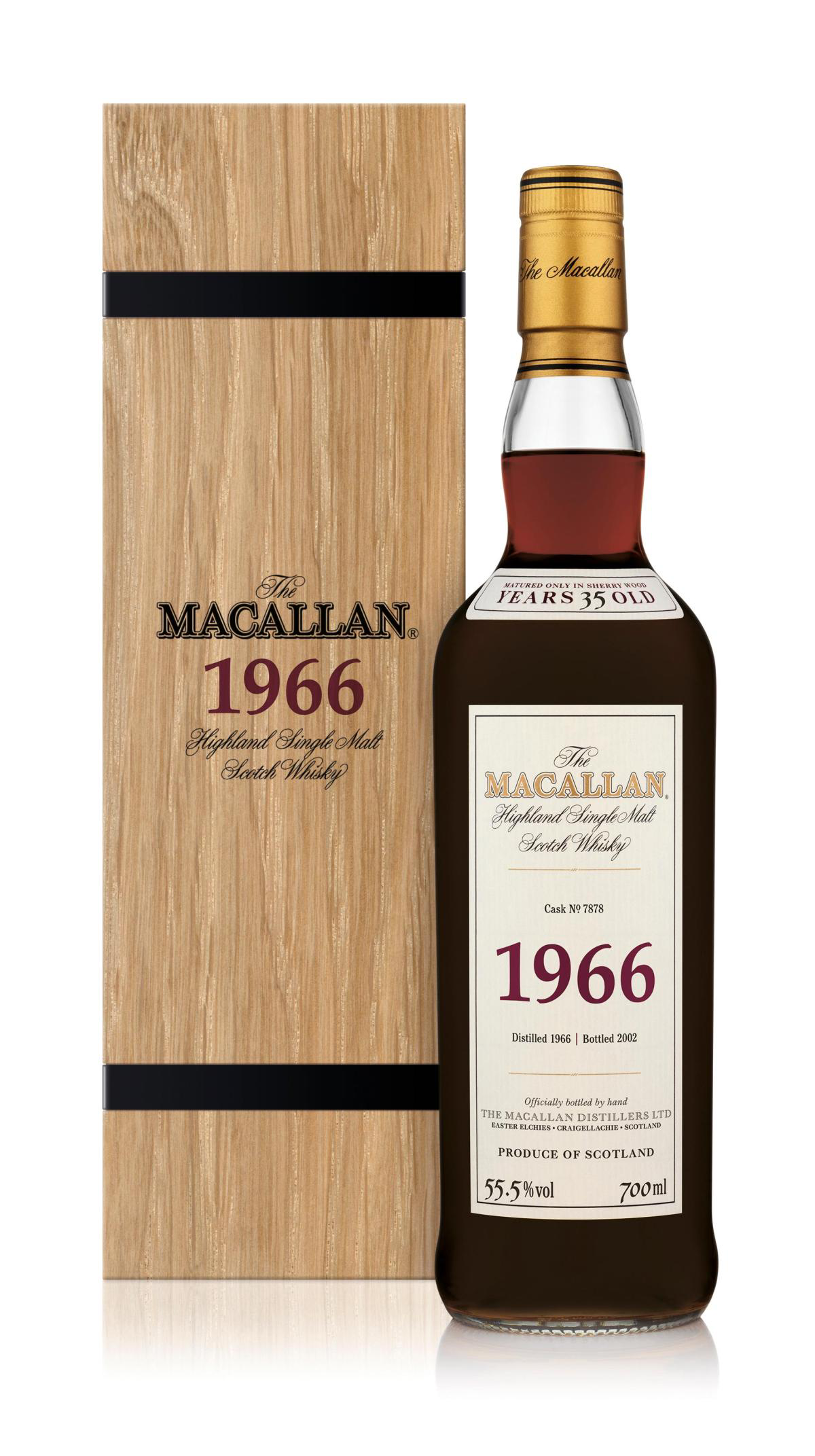 赠给生意伙伴Chuck的35年,是来自麦卡伦珍稀年份系列(Fine&Rare)的、蒸馏于1966年的威士忌: