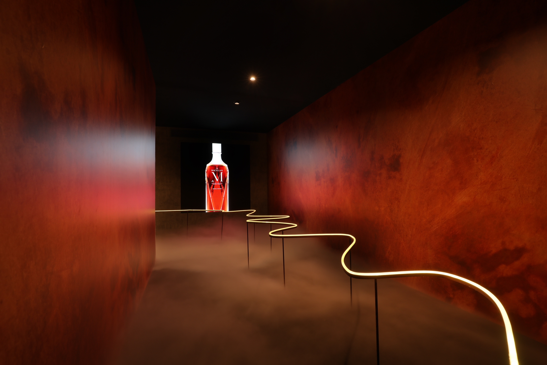 入口处那条蜿蜒的金色灯带,宛如孕育麦卡伦的斯佩河,引领着我缓缓步入麦卡伦精心准备的的沉浸式体验区域。