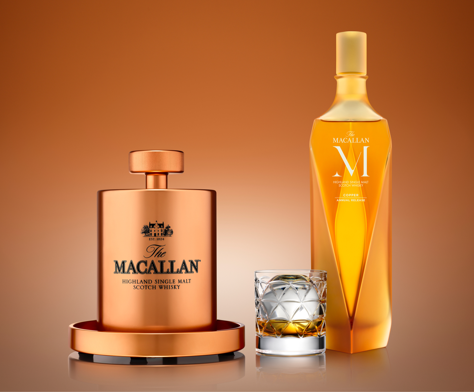 今年,麦卡伦发布璀璨·金,并与璀璨、璀璨·黑一起组成了璀璨系列,相当于麦卡伦威士忌的“集大成之作”,以棱镜般的外形折射出了麦卡伦的精神世界: