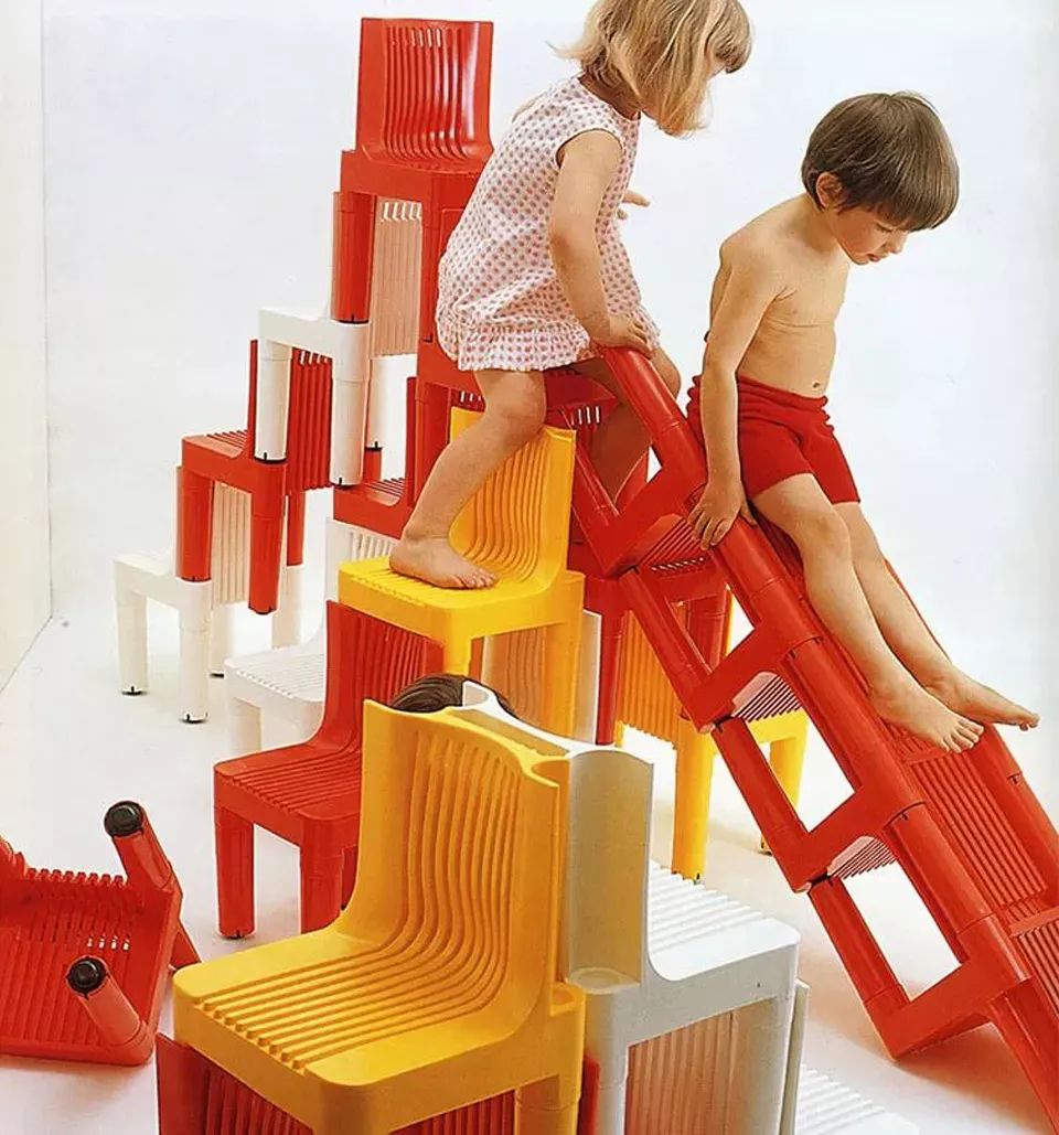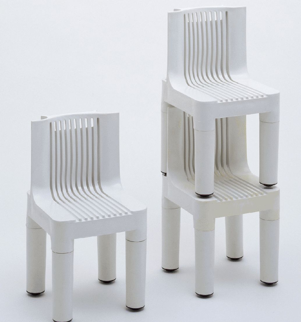 1968年Kartell生产了科隆博设计的Universale Chair,是全世界第一个一次注塑成型的椅子,椅子上的开口标志着它是用模具一次浇出来的,可以批量生产,流畅的线条影响了整个六七十年代意大利家具设计的风格。这把椅子被永久收藏在MoMA博物馆。