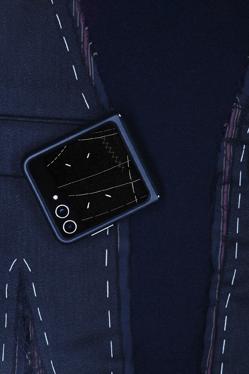 此次合作特别版的独特之处在于后玻璃背板设计,为我们展示了 Maison Margiela 夹克的内部结构设计。此设计为 Galaxy Z Flip5 Maison Margiela 版本独有,采用半透明效果,展现设备复杂的细节,同时将科技与时尚融为一体。同时随附两个翻盖皮革外壳,采用天然黑色皮革和真皮织物的 Logo 徽标。而且包装也体现了 Maison Margiela 的特别版设计,采用了品牌独特的缝线图案和纸质编织面料。