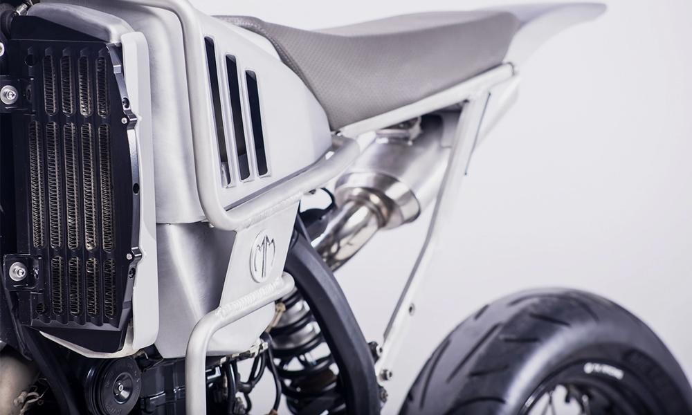 MM Shark 的蓝本是 2017 KTM 450 EXC Six Days ,本体低调但性能出色。MalaMadre Motorcycles 在改造过程中运用手工的 3D 建构设计,为 MM Shark 加持一个粉末涂层车架、新型铝制零件、隐藏的电气设备、LED 灯以及新的排气装置等。除了功能,MM Shark 还拥有一个简洁有趣的新外观,无论是银色金属散发的清新色泽,还是整体流畅利索的线条轮廓,都让舒适的骑乘感更上一个层级。