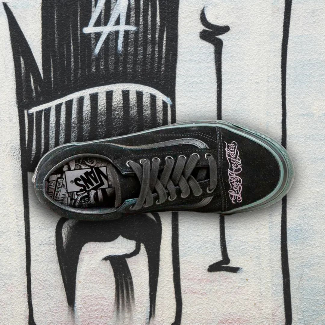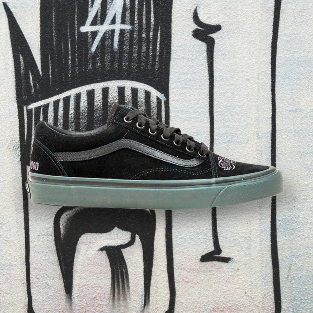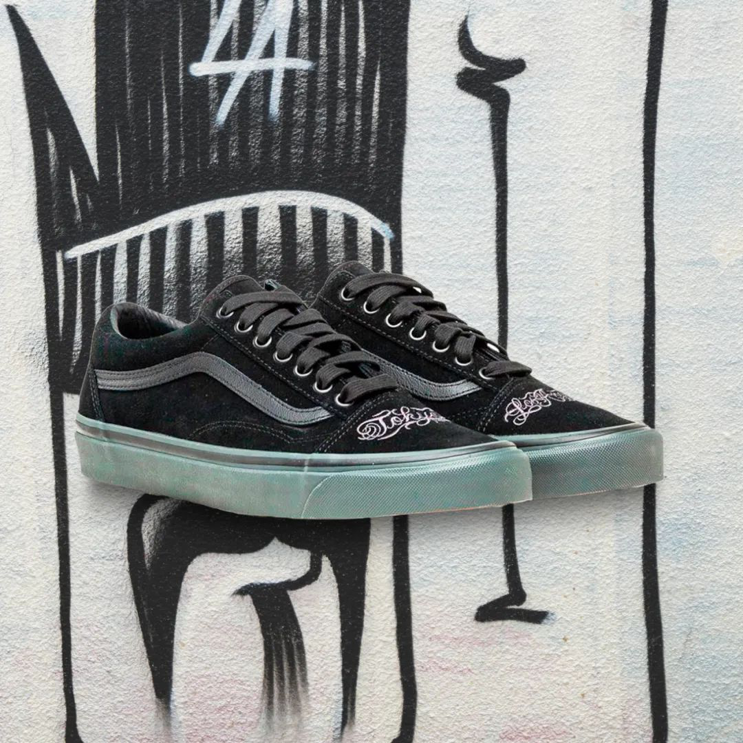 此次联名选用 VANS 的 AUTHENTIC 和 OLD SKOOL 两款经典鞋型为蓝本,设计细节中充分还原 VANS 美产时期的复古工艺。
