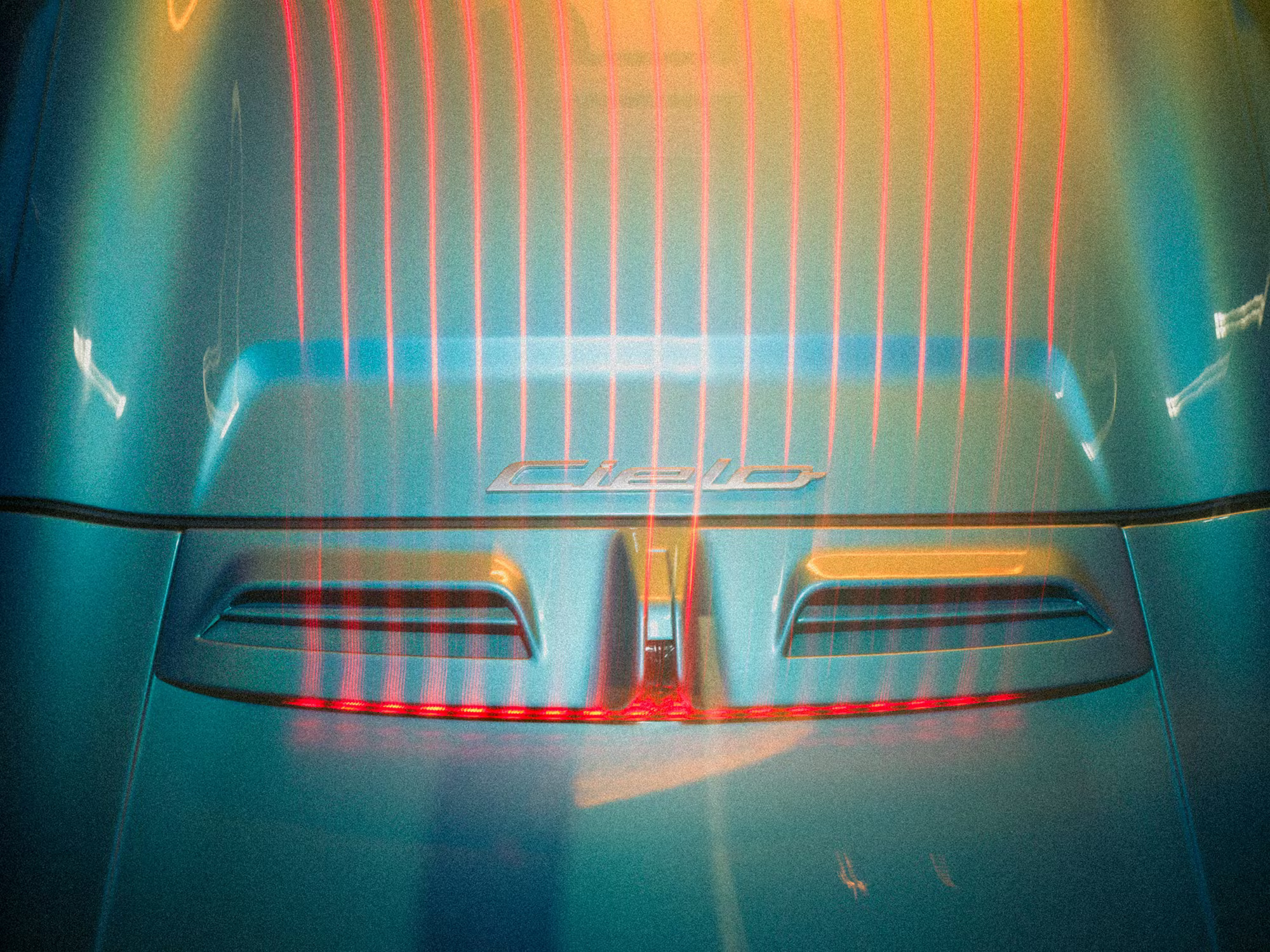 MCPURA Coupé 和 Cielo 车型采用玛莎拉蒂 Fuoriserie 定制项目开发的全新 Ai Aqua Rainbow 色系。其中 Coupé 采用哑光漆面,Cielo 则采用亮光漆面。内饰方面,座椅应用 Alcantara Ice 面料,激光蚀刻图案赋予座椅深度,并在红蓝之间营造出一种色彩的幻变。其整体印象并非局限于传统,而是将 MCPURA 定位为一款现代设计作品。Cielo 增添了另一种奇观:其可伸缩的玻璃车顶可在几秒钟内从不透明状态切换为透明状态,它将座舱变成了一个更可控的环境——一部分是封闭的驾驶舱,一部分是开阔的天空——根据驾驶者对外部世界的感受,提供随之变化的驾驶体验。