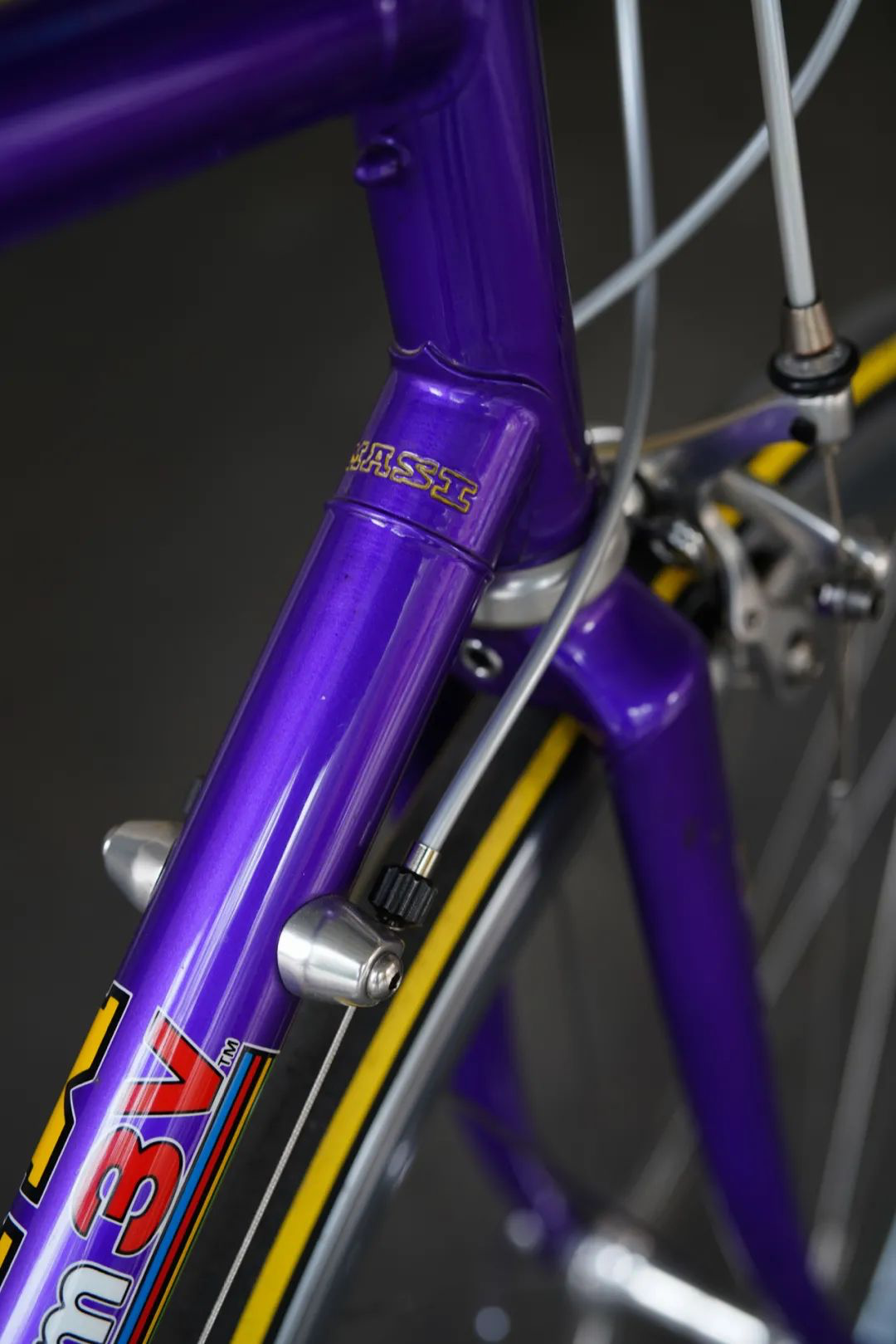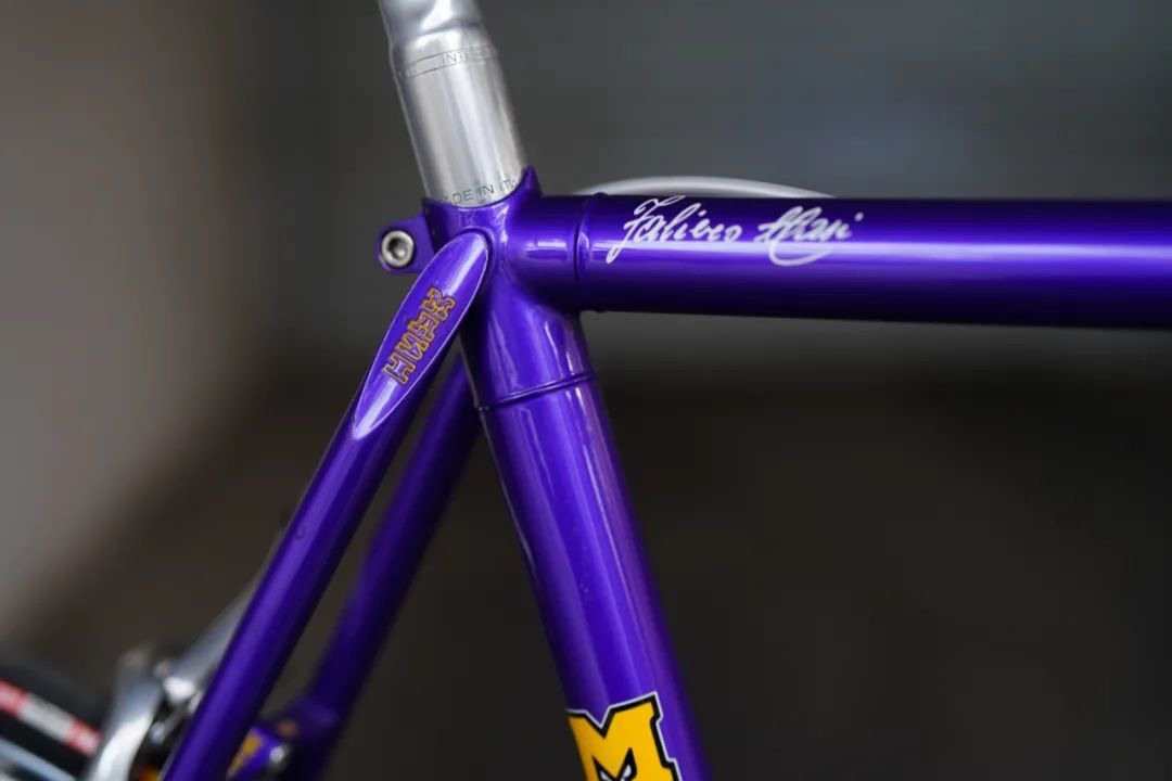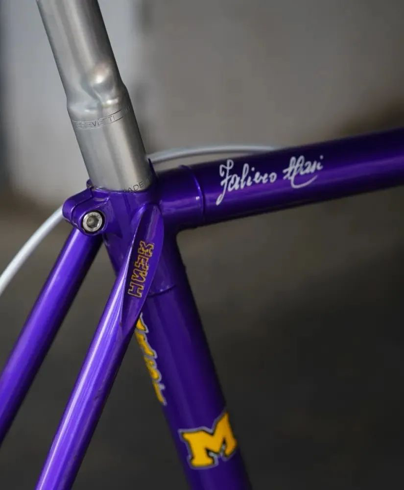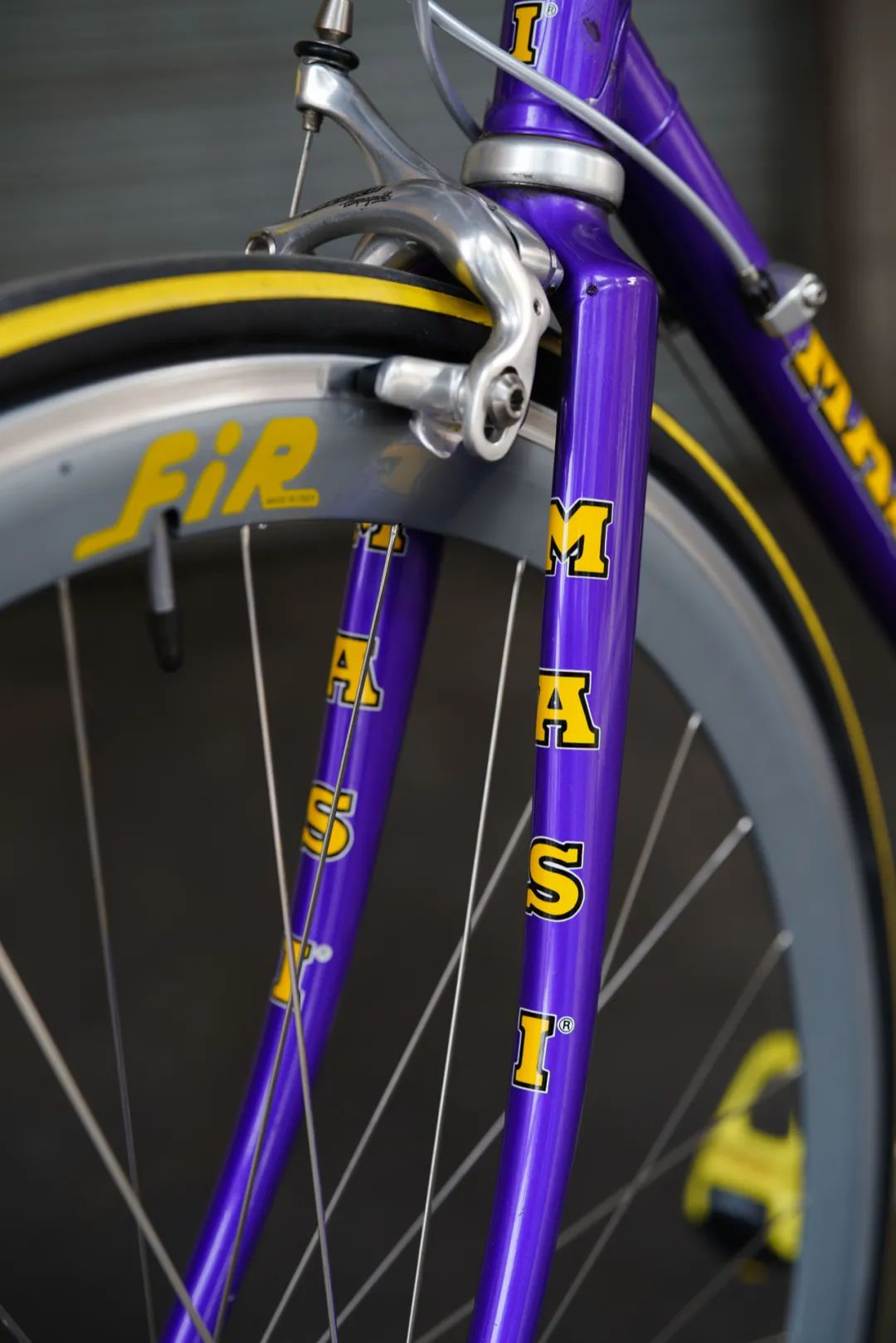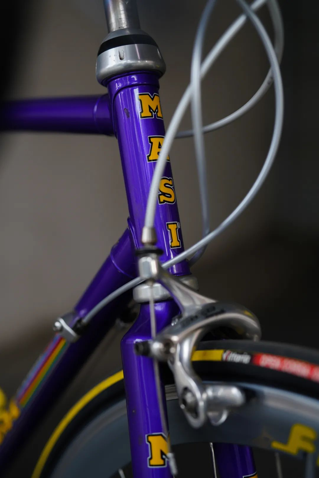 ▲MASI 3V车型诞生于1985年,在TIG焊接工艺还不够成熟的上世纪80年代,车身刚性与重量的平衡已经成为了钢架设计的瓶颈,加粗管材意味着要用更大更重的套管LUG来进行管材之间的连接,计算机辅助工业设计所产生的外LUG结构是MASI 3V这款车型最大的设计亮点,也为钢架车使用超粗管径并实现轻量化打下了良好的基础。图片中我们几乎看不到车架上的焊接痕迹,只有在头管、五通和上管末端看到圆环造型。