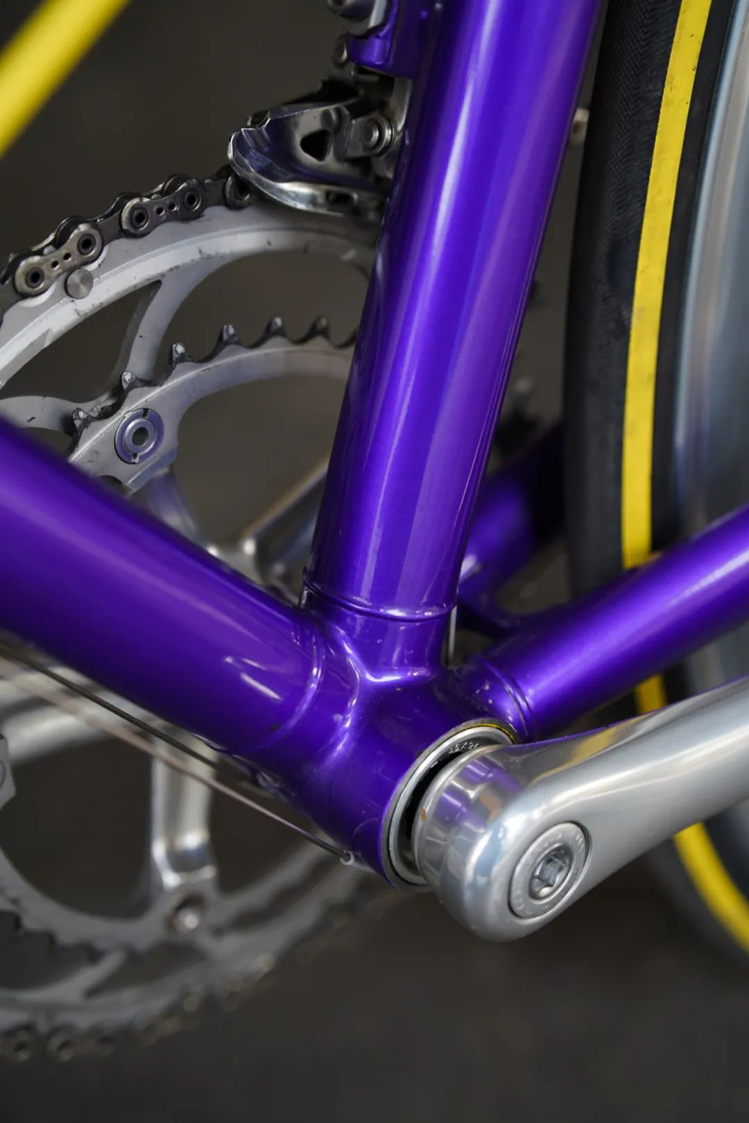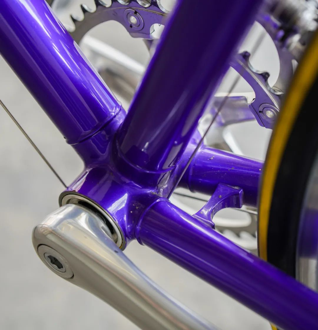 ▲粗壮的管材和独特的焊接工艺让这台赛车与众不同,亮紫色中透着细腻的金属光泽。
