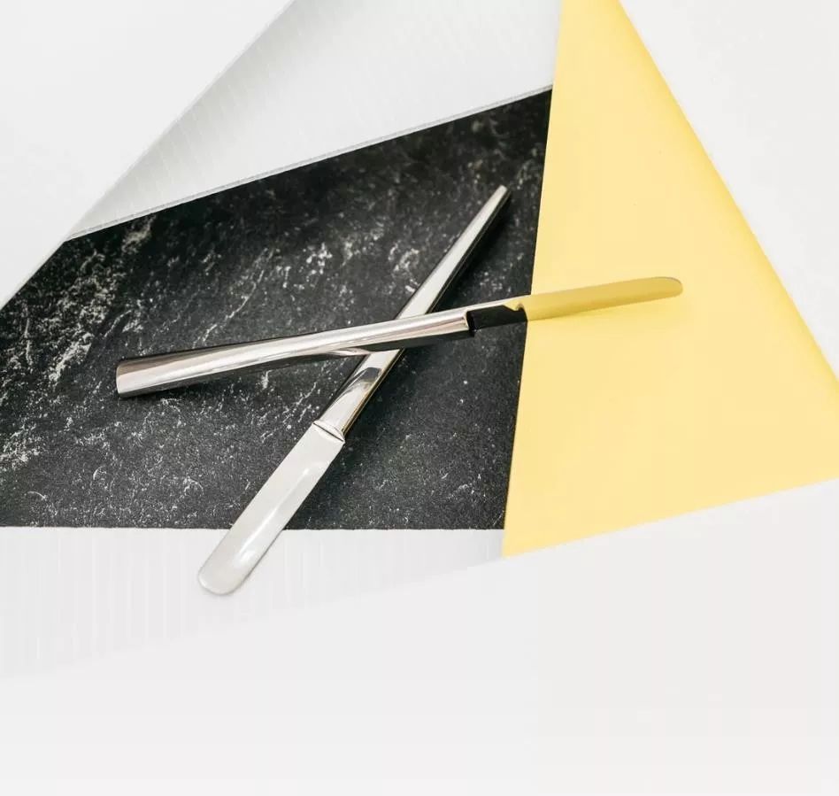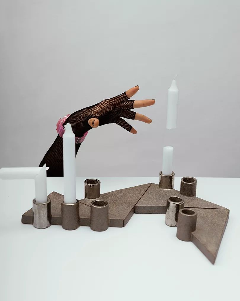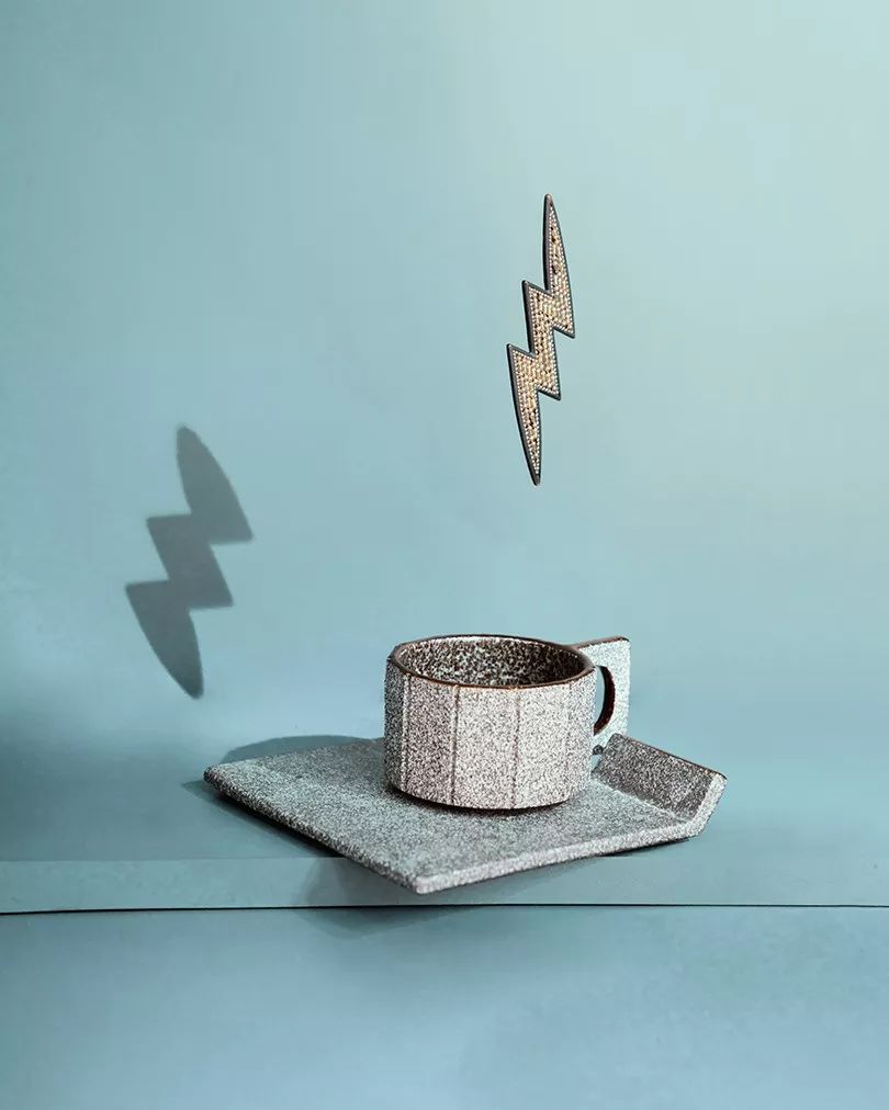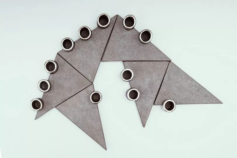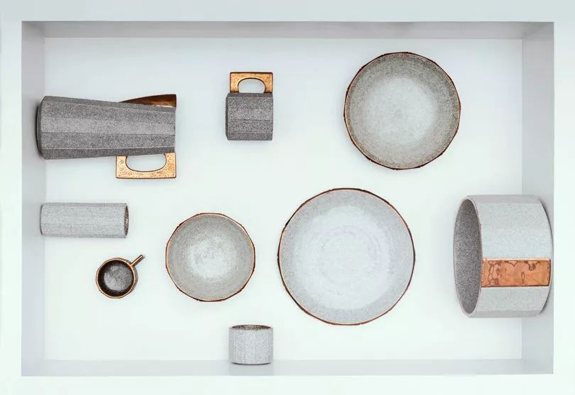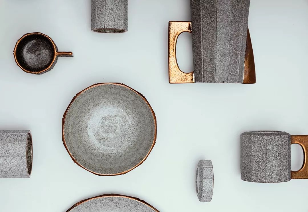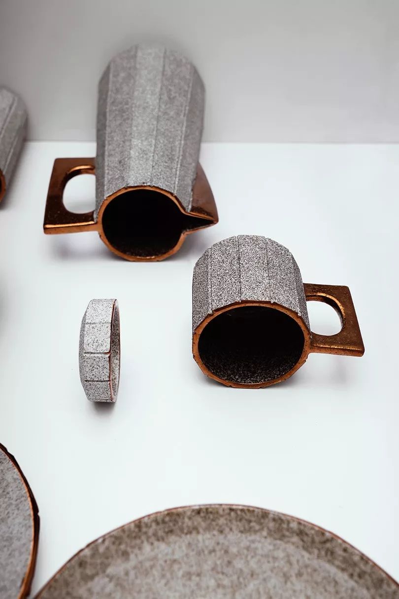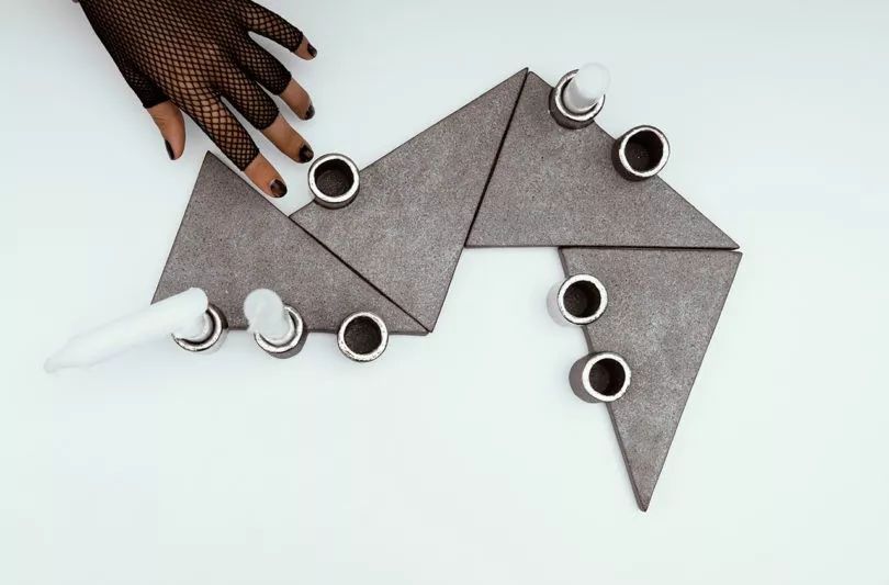 神似七巧板的烛台,也可以按照自己的喜好随意组合。所有餐具都使用相同的瓷器,经过复杂的烧制过程,配上富有光泽的黄铜作为装饰,设计感十足。