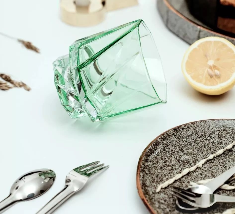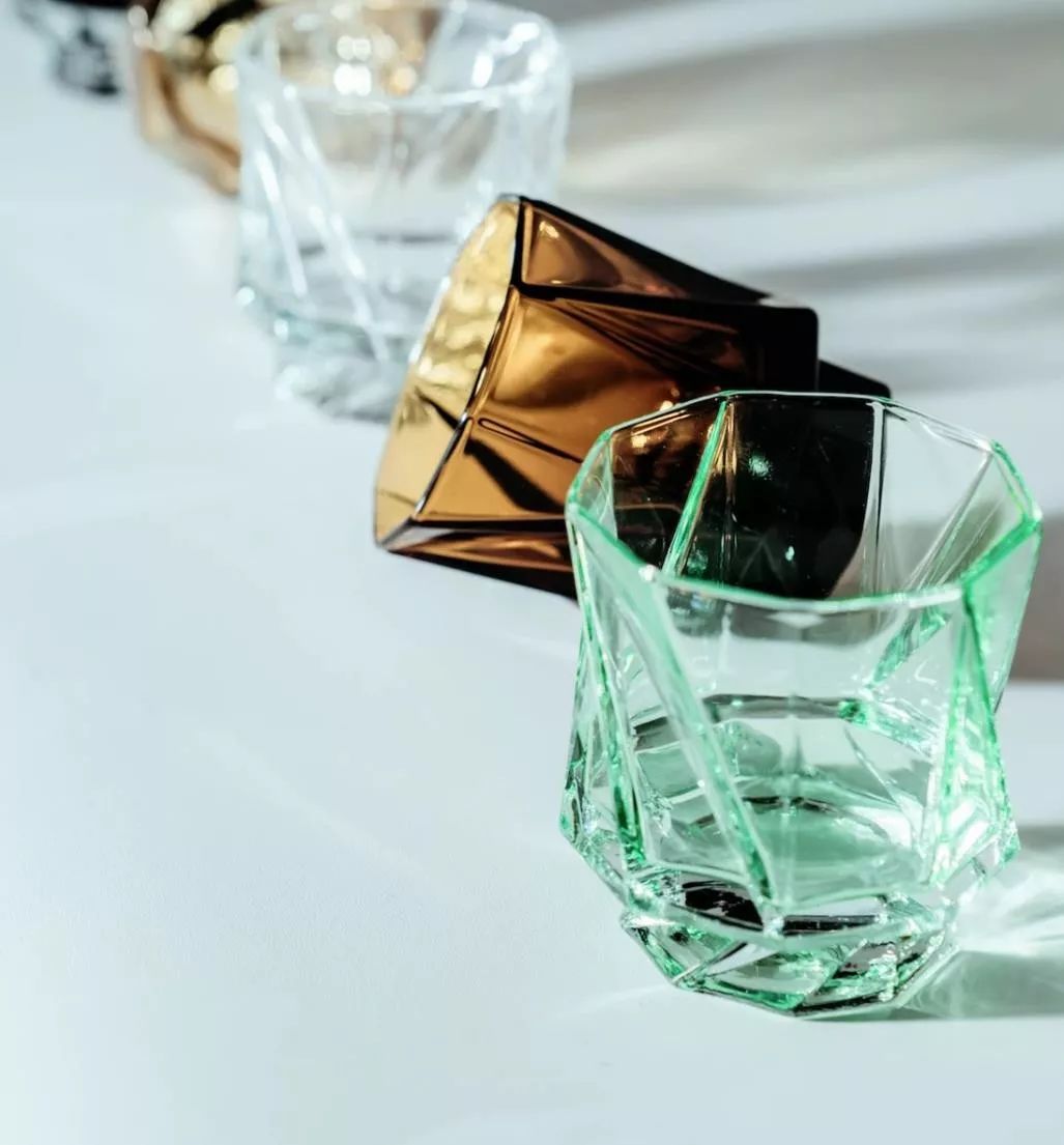 这些色彩鲜艳的玻璃杯,就宛如水晶一般美丽,多面的棱角设计,使杯子握起来更舒适,突出的底座,让玻璃杯可以叠加起来存放。