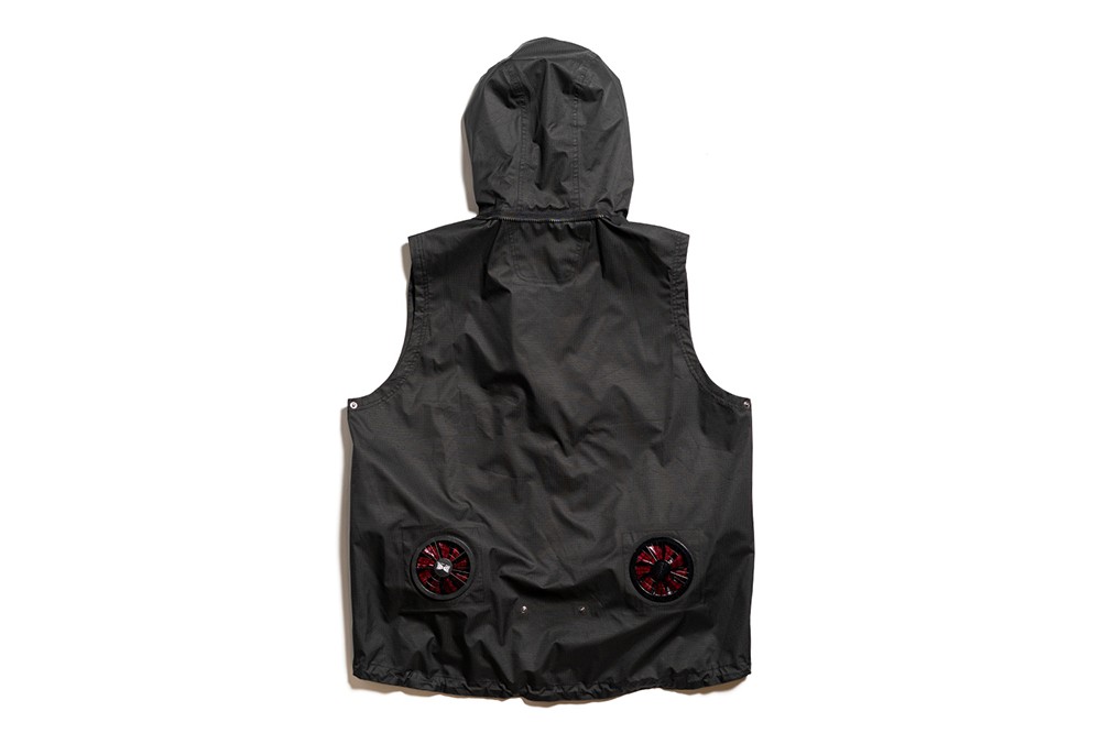 顾名思义,这件自带空气循环系统的防风雨外套能带给穿着者凉爽的着用体验。这件创造力十足的夹克外套是品牌 “kuchofuku” 系列的一部分,该名称意思是 “air-conditioned clothing” ,旨在使用双电扇技术,以便在炎热潮湿的天气中保持凉爽。这件风雨夹克不仅拥有两个可移动的电扇,还胜在 MEANSWHILE 超强的机能设计,以三层透气尼龙防撕裂面料制成,具备完全防水防雨的附加功能。同时,夹克还可转换为背心,实现一衣多穿。