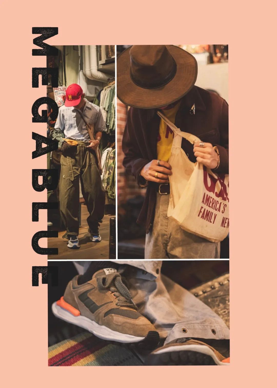 数数手指,这已经两个品牌的第四度合作,首次打破了用不同材质做出converse溶解的规律,推出全新的跑鞋款式,我们就把这种意义层面再度升华,把它们与Mega Vintage的古着单品做搭配,借此打破更多的条条框框。