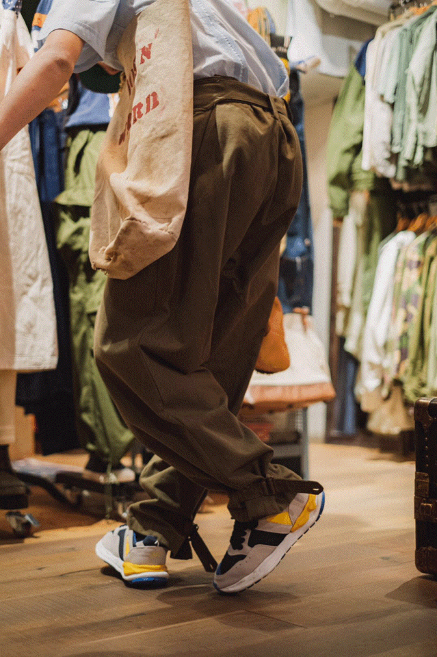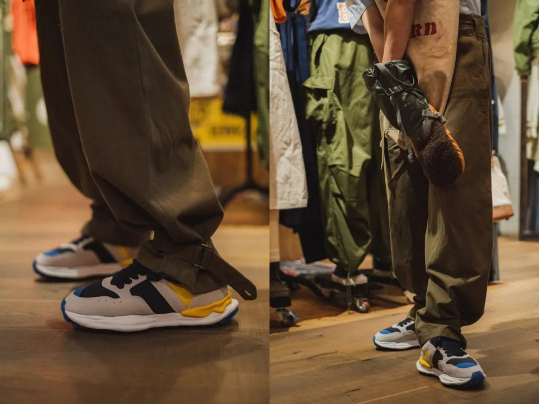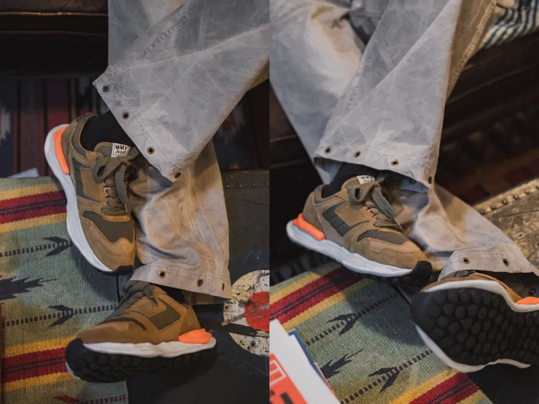 了解Nigel的人就会知道他注重产品的每一个小细节,因为这些细节都其实保留着前人对服装与生活的理解和巧思,这一点也刚好体现在这次我们选用的Nigel Cabourn x Maison MIHARA YASUHIRO AW2020的两个鞋款里,虽然这两双复古跑鞋UK(军绿)以及France(蓝白)的外型都差不多,但细看就会发现两双鞋的裁片的铺排、材料的运用都是有所不同的。