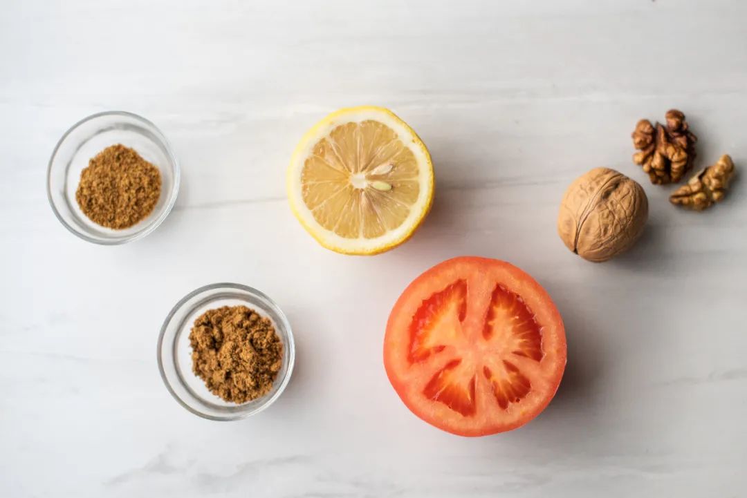 两个番茄(切块)、10g孜然粉、10g印度综合香粉,加入锅里继续拌炒。
