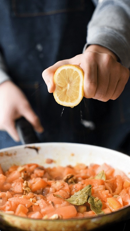 倒入打好的酱汁,转小火慢炖20分钟。 炖煮过程中时不时搅拌,添加黄油和淡奶油,保持酱汁顺滑。