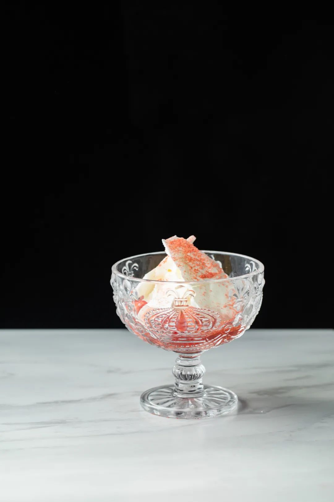 3. 最后盖上蛋白脆片,撒上脱水的草莓粉,Eton Mess完成!
