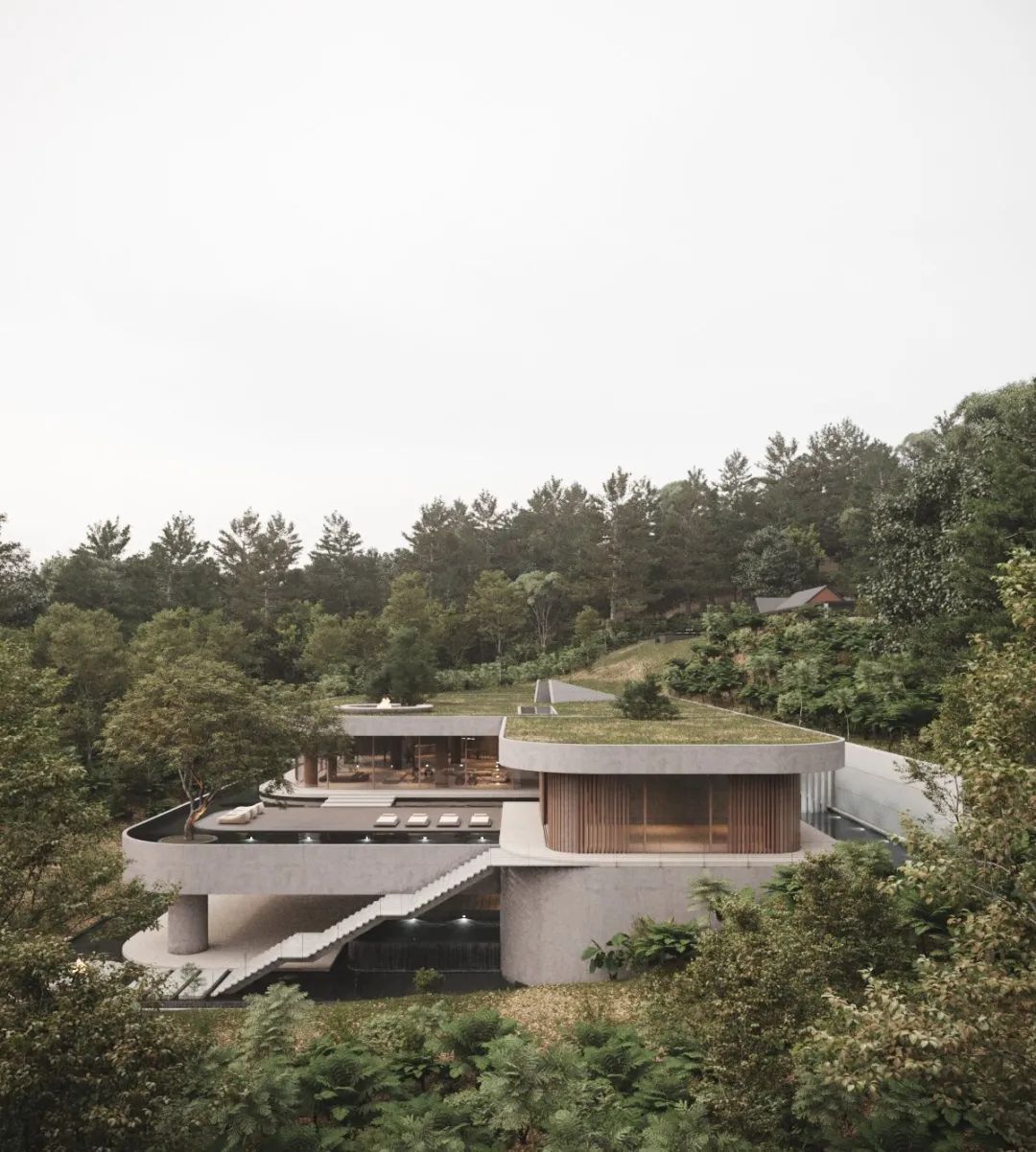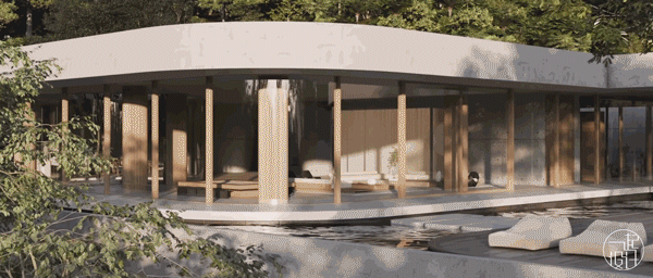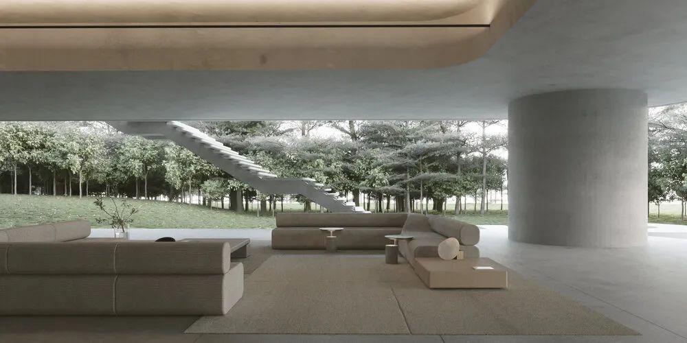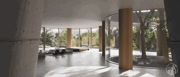 项目共有两层,目前正在建造中,先来看看效果图吧。圆润的建筑边缘消除了混凝土结构的生硬感,使整体更加流畅、自然。
