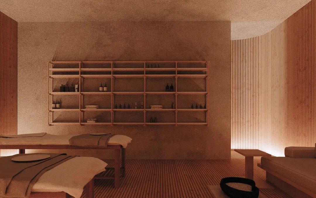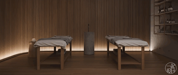 按摩室通过墙角灯带的间接照明,打造出最能放松身心的场所。
