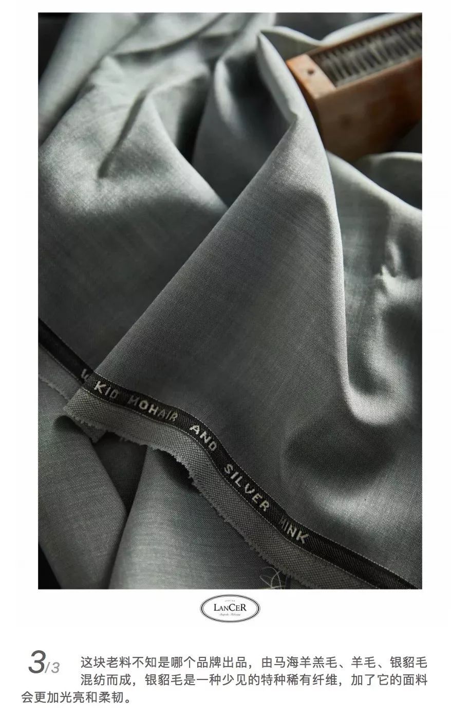 从某种程度上来看,古董马海毛老料除了料性相对来说更加稳定(已经与空气中的水分充分接触),面料稀有,还有一点必须要说的是早年的马海毛织出来的布血统更加纯正,而现在的安哥拉山羊的血统很难去保证它的原汁原味,马海毛的特性也难以百分百去还原。