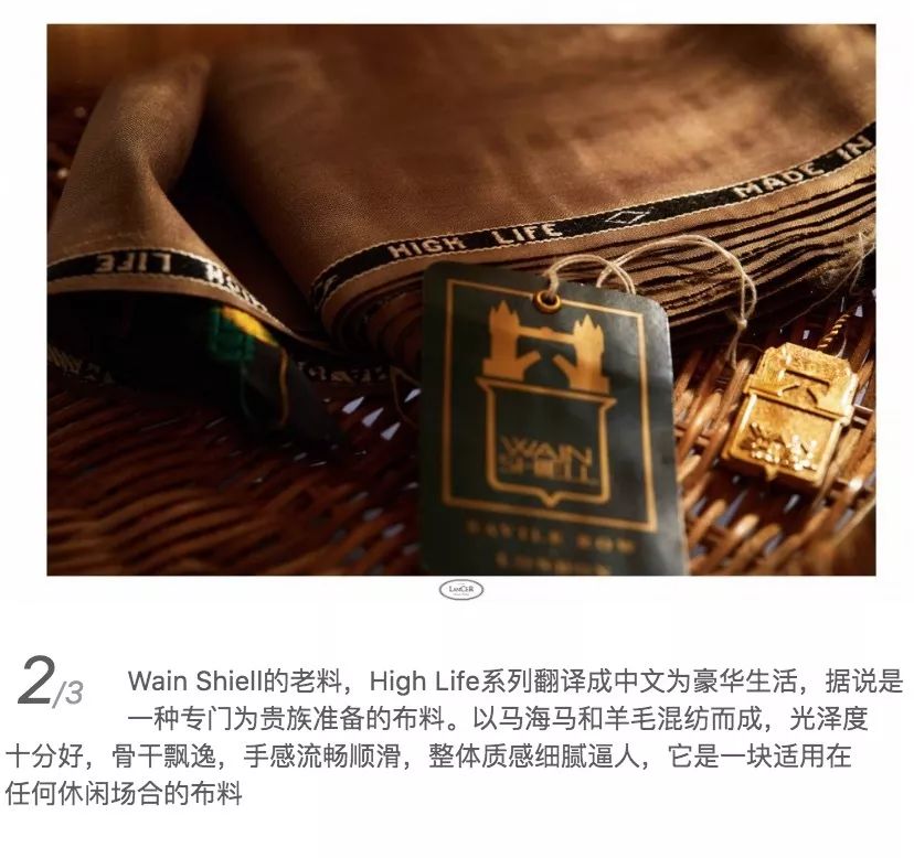 世事境迁,当老一辈人弥留在Scabal往昔辉煌岁月的光阴时,也会顺带勾勒起脑海中另一个牌子的经典回忆—Wain Shiell。Wain Shiell是一个将马海毛发挥的非常有特色的品牌,它的历史可追溯到1807年伦敦西区的Warwick Street,和H. Lessar并称为伦敦的布王双雄。H. Lessar当时主推传统保守的精纺面料,一直到现在也是。Wain Shiell在上世纪良好的口碑是源于杰出的创意和先进的织布技术,它不仅是英国布料优雅、耐用的代名词,更是受到了国际性的认可与喜爱。