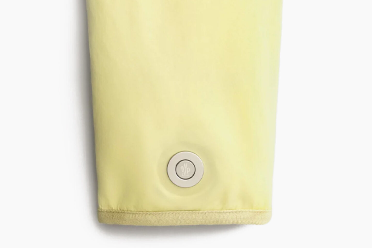此次创新的磁性双纽扣系统由 LoveFrom 和 Moncler 首创,被称为 “Duo Button” ,由一个内纽扣和一个外环组成,内纽扣利用一个小活塞卡入外环。内纽扣还具有一个内部磁铁,可将活塞固定在原位,直到接触外环中的磁铁,从而防止其叮当作响或弹跳。据悉,LoveFrom 和 Moncler 计划将于本月底开始发售这款模块化三合一夹克。