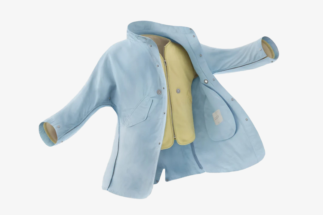 身为前苹果首席设计官,Jony Ive 在离开苹果后创办了自己的设计公司 LoveFrom 。与 Moncler 合作是 LoveFrom 进军服装领域的一次尝试,而这次意想不到合作的成果是一款三合一夹克系统。该系统的底层是一件自带未来主义风格的毛衣开衫,搭载口袋、主中心拉链和侧拉链;中层是一件现代版 chore coat ,其前胸配有防风雨襟片,夹克衣领可向上或向下翻起,夹克整体由一块巨大的再生尼龙素材制成,采用无缝设计;至于底层,则是一款加持有兜帽、连帽衫式袋鼠口袋和 1/4 拉链的斗篷。该分层体系采用柔和配色呈现,使用磁性按钮系统连接和断开。