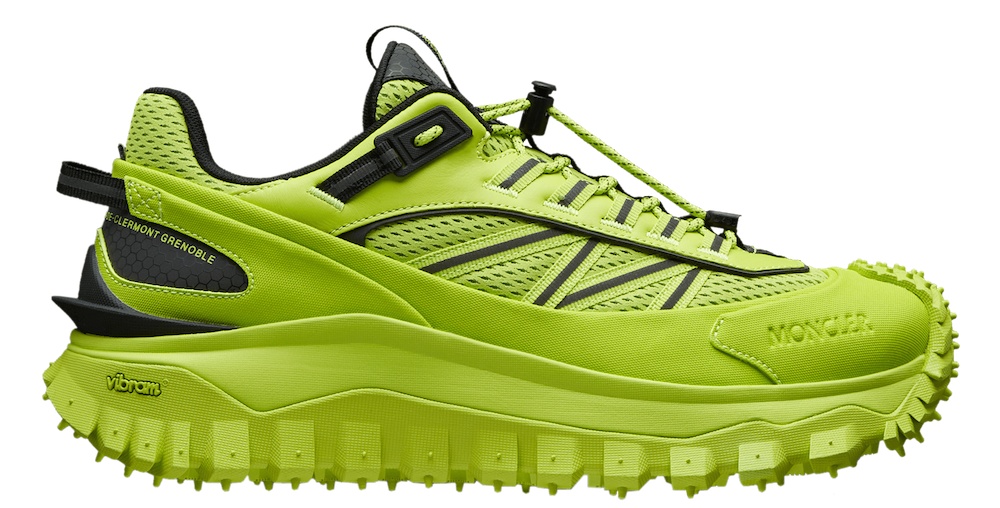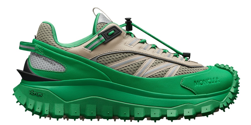 本季 Moncler 除了带来 Trailgrip 新配色包括春夏季典型的缤纷霓虹绿、米绿、拼色以及灰褐配色款式外,还释放更具透气与缓冲性能的 Trailgrip Lite 版本。这双崭新的户外风球鞋拥有满载流线感的外观,在保持 Trailgrip 标志性外底的同时,Lite 版要比同类型普通款轻 23% 。Trailgrip Lite 搭载 Moncler 专利技术元素,采用坚固的防撕裂鞋面和圆润的网眼装饰,拥有卓越透气性以及舒适性。至于鞋底部分,主要基于特殊的 Vibram MEGAGRIP 橡胶混合物,附带多个可靠的尖头结构,可在所有地形上提供无与伦比的牵引力。同时,鞋底部分还加持轻质 EVA 中底和可清洗的 OrthoLite 鞋垫,以进一步提高靴子的舒适性和调节温度的能力。目前,Trailgrip 新配色以及 Trailgrip Lite 部分配色已在 Moncler 官网发售。