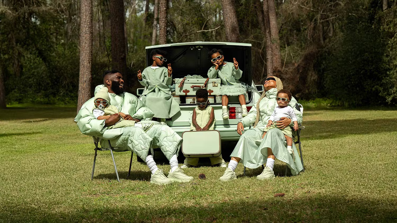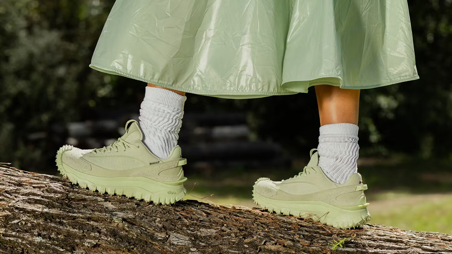 Trailgrip Momint 以 Nwigwe 的代表色绿色为基调,鞋身由顺滑绒面革、磨砂革和纹理皮革巧妙构成,旨在重新演绎 Moncler 的 Trailgrip 鞋款。此外,缝制的 “Chukwu” 细节(源自全名 Tobechukwu)则为鞋底增添了灵魂。继 Reebok x Chukwu 推出联名薄荷绿配色后,Nwigwe 继续进军越野跑鞋领域也就不足为奇了。此次的发布也极具个人特色,Nwigwe 与妻子和四个孩子从头到脚身着 Moncler 服装,背景是薄荷色的森林——看起来既像家庭自驾游,又像高级时装广告。据悉,这双 Trailgrip Momint 现已通过 Moncler 官网发售。