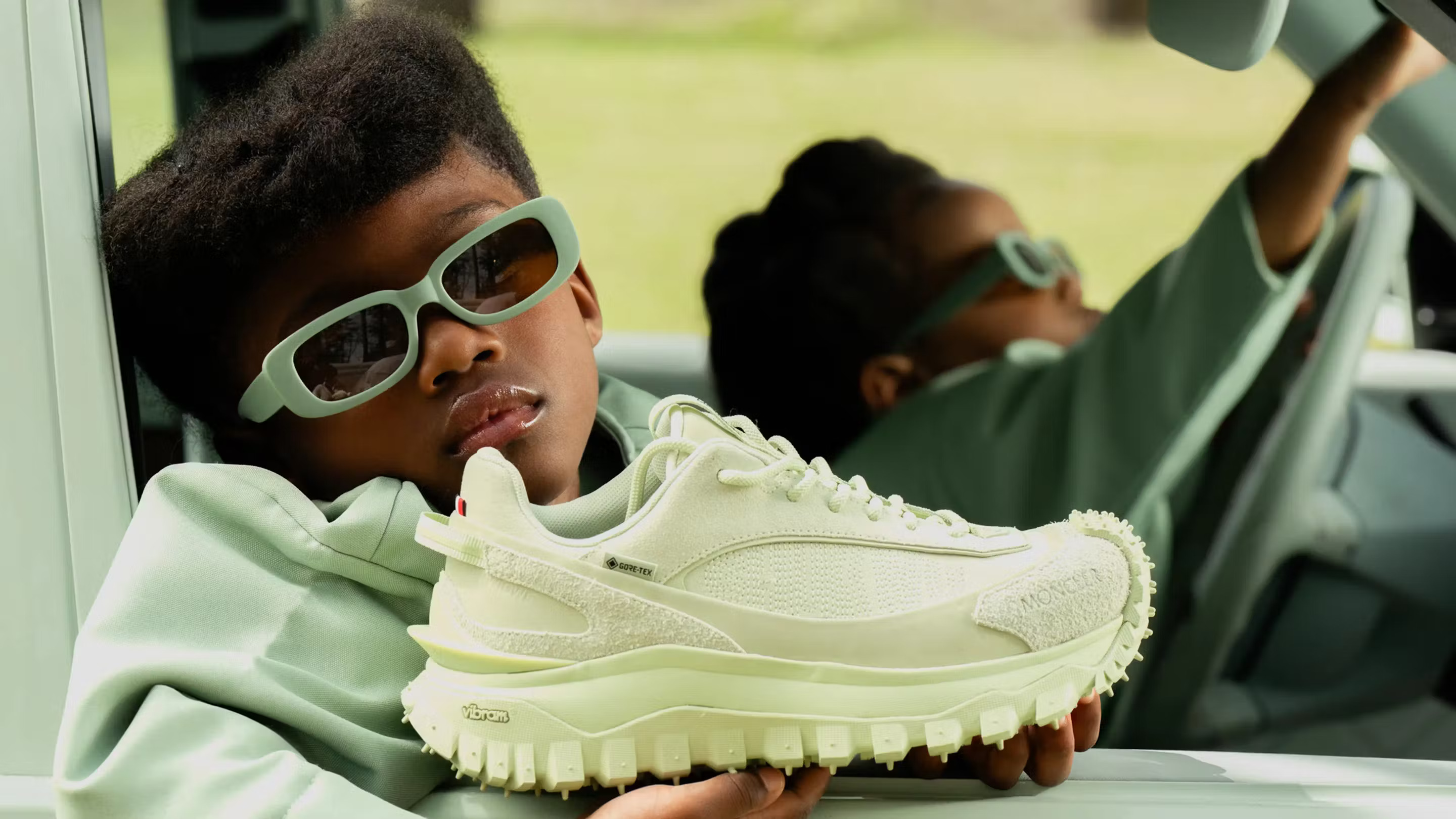 灵感源自 Nwigwe 格莱美提名专辑《moMINTs》,Trailgrip Momint 基于 Moncler 粗犷风格球鞋轮廓以及纹理,颇具靓丽的混搭气质,其型录也满载看点:由 Nwigwe 和妻子、孩子以及一辆复古奔驰车共同出演。作为 Moncler 的老朋友,Nwigwe 一直是 Moncler Genius 秀场的前排常客,也曾与家人一起出演宣传片,因此,与 Moncler 合作推出一款运动鞋似乎是必然之举,而 Nwigwe 也借此良机打造了一款与专辑《moMINTs》相配的球鞋。
