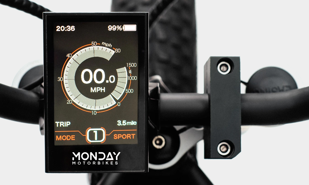 Anza 旨在致敬 Monday Motorbikes 在 2015 年刚诞生时测试第一款摩托车的街道——即 Anza Street 。秉承 Monday 一贯的设计特色与性能规格,铝制的 Anza 质量不到 70 磅,带有辐条轮,以及用于 HUD 的 LCD 彩色显示屏,可与额定功率为 500W 或 700W 的后轮毂电机配对,预估一次能行驶 25 英里。外观方面,可以看出 Monday 大幅简化了 Anza 的骨架设计,配合各领风骚的 Midnight Black 、 Hunter Green 与 Storm Trooper White 配色,使其清新简约的整体造型能立即在街上脱颖而出。