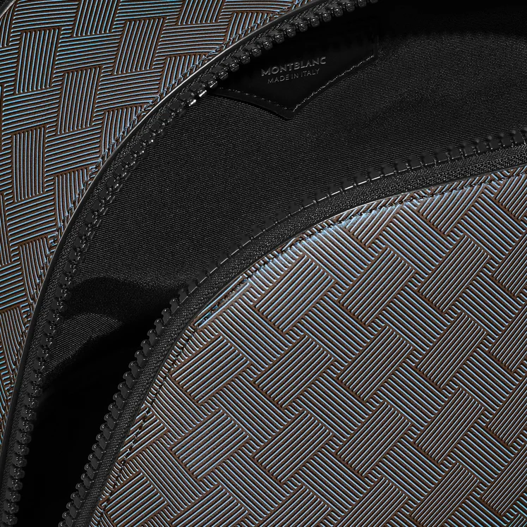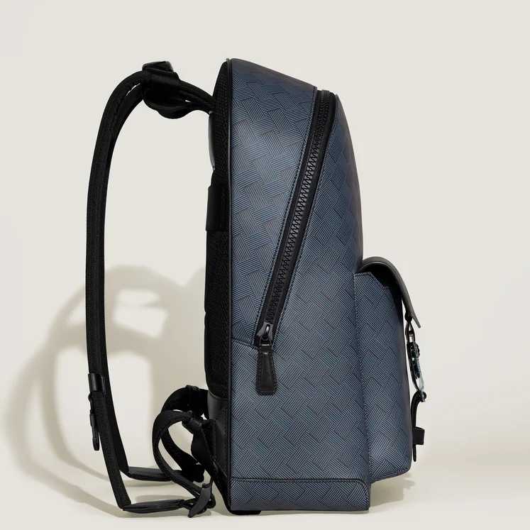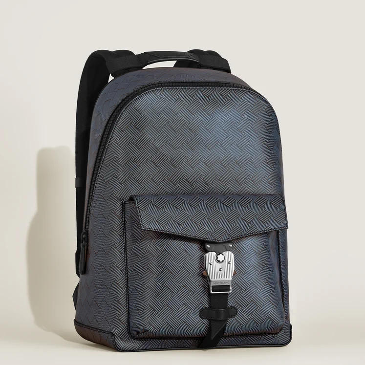 这款配色为薰衣草灰的皮革背包整体运动感十足且容量巨大,可容纳几乎所有日常必需品,甚至更多,不仅拥有利于有序存放的内部口袋,还设有专用隔层,可放置最大 13 英寸笔记本电脑和最多 2 支书写工具。Extreme 3.0 背包外观图案的灵感源泉是 20 世纪 20 年代万宝龙广告部主管 Grete Gross 创作的几何图形设计,其视觉效果深受当时包豪斯风格的影响。同时,背包的外部口袋也采用醒目的碳纤维图案印花。