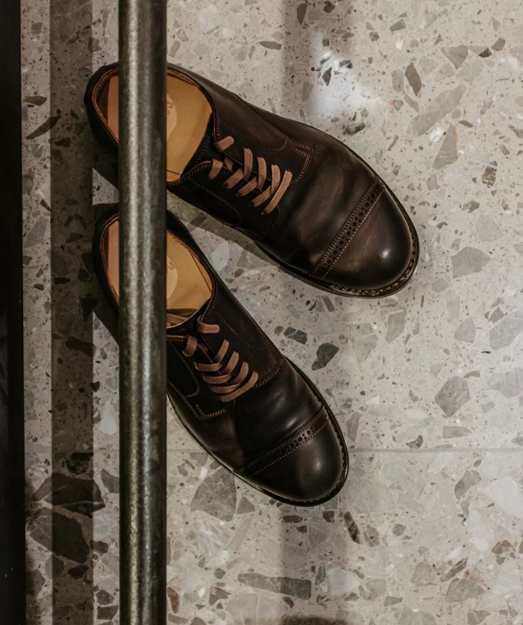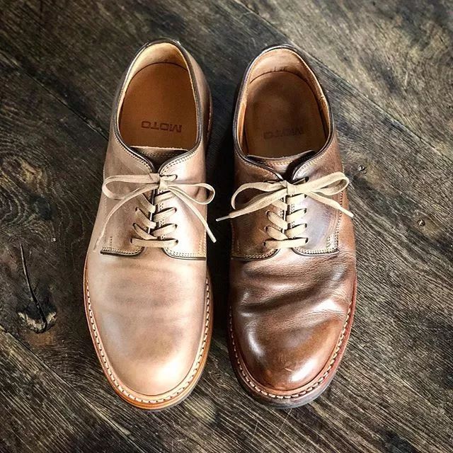 关于护理和使用,MOTO努力创造出能够引出材料魅力的鞋履。因此尽可能使用天然皮革,这需要靠手工执行,这就是人和皮革产生温度的时候,每样东西都会旧化衰老,随著时间的改变每个人的每双鞋都会有自己的使用样貌,只要对于皮革有基本的知识,护理并不难,护理没有绝对的答案,能够长时间与自己的皮鞋共存才是最重要的。