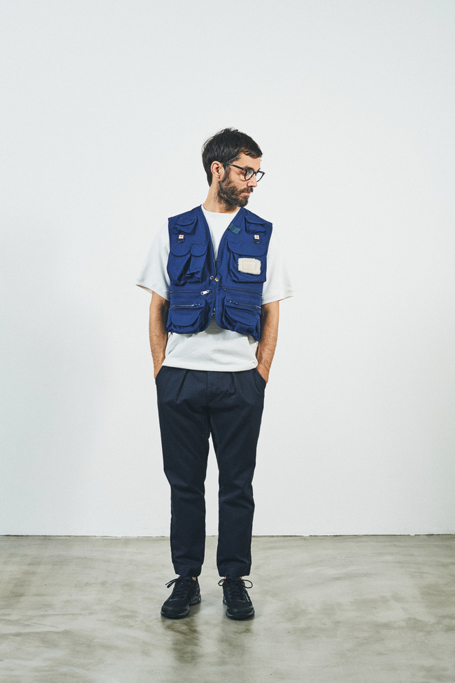 而同为旗下品牌的SOUTH2 WEST8则更容易“效仿”。基于Nepenthes主理人清水庆三热爱垂钓而成立的SOUTH2 WEST8有着更固定明确的搭配思想,定番自然是钓鱼马甲。设计上除了遵循“户外味型”以外,融入工装细节同时也透出层次之道。
