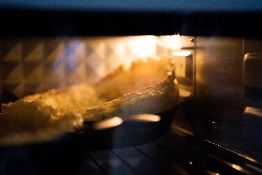 蹲在烤箱边,向 God of baking 祈祷,许愿成功的话,烤箱里的松饼会随着温度慢慢膨胀,边缘变得金黄,同时能闻到诱人的蛋奶焦香。