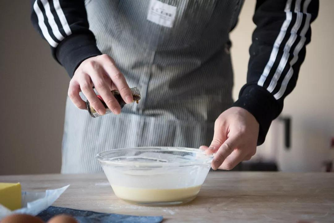 阿秋的甜版:加一勺糖,几滴香草精;我做的咸版:加一撮盐,小葱切碎拌匀。