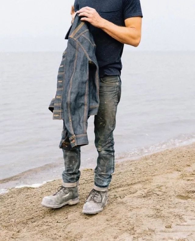 乍看之下原色牛仔裤很沉闷乏味,在看似单一的靛蓝色外表下,不同的布料材质会有其独特的结构特点。只要给它以一段时间的穿着与照顾,它们会回馈你最惊艳的色落。